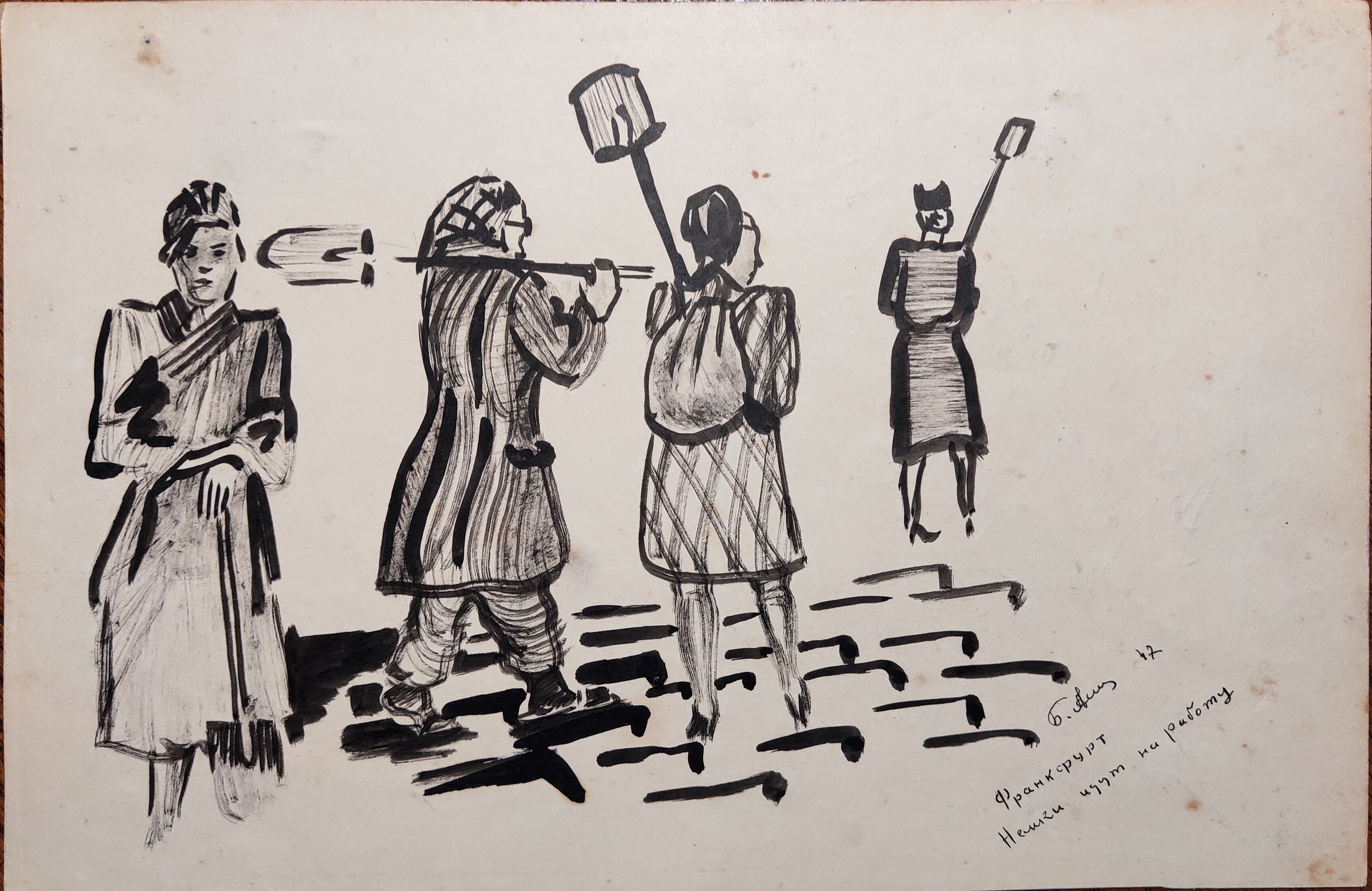 Рисунок "Франкфурт 1947г. Немки идут на работу"