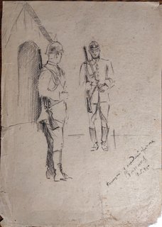 Рисунок карандашом "Полицаи в парадной форме Румыния 10.05.1945 г. " 20