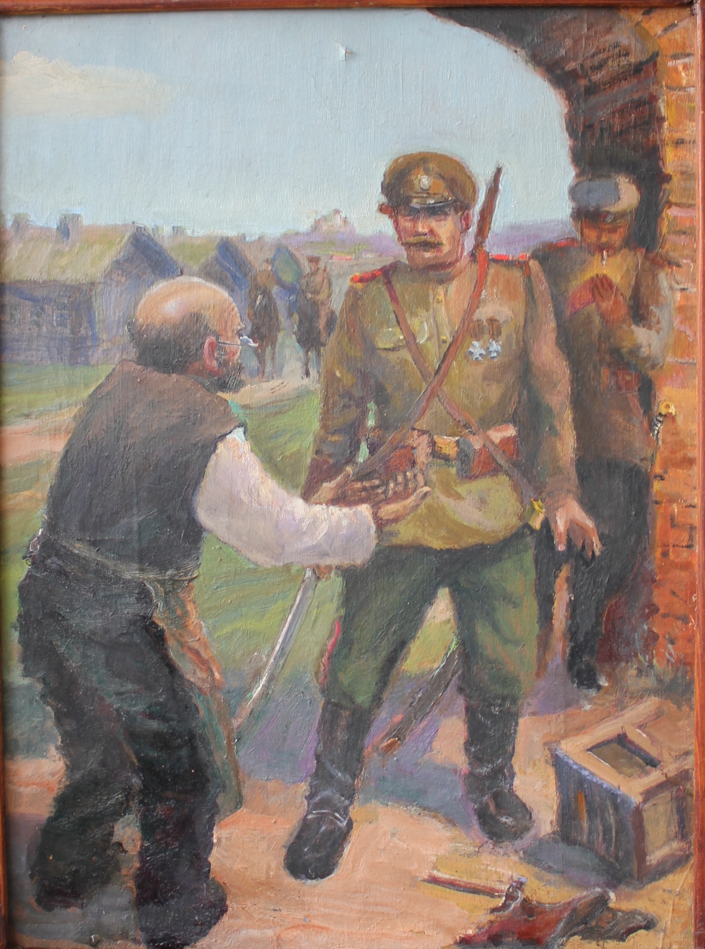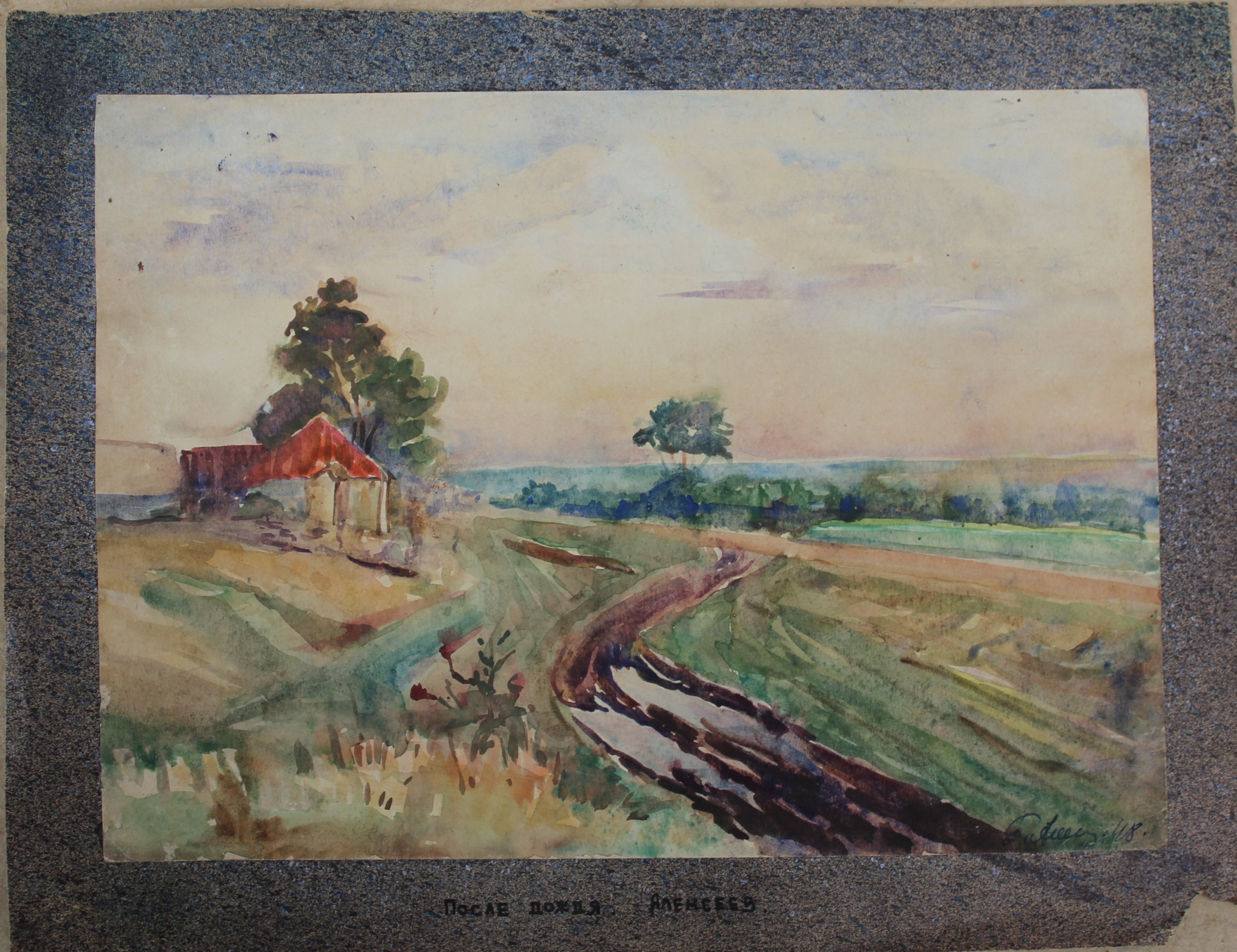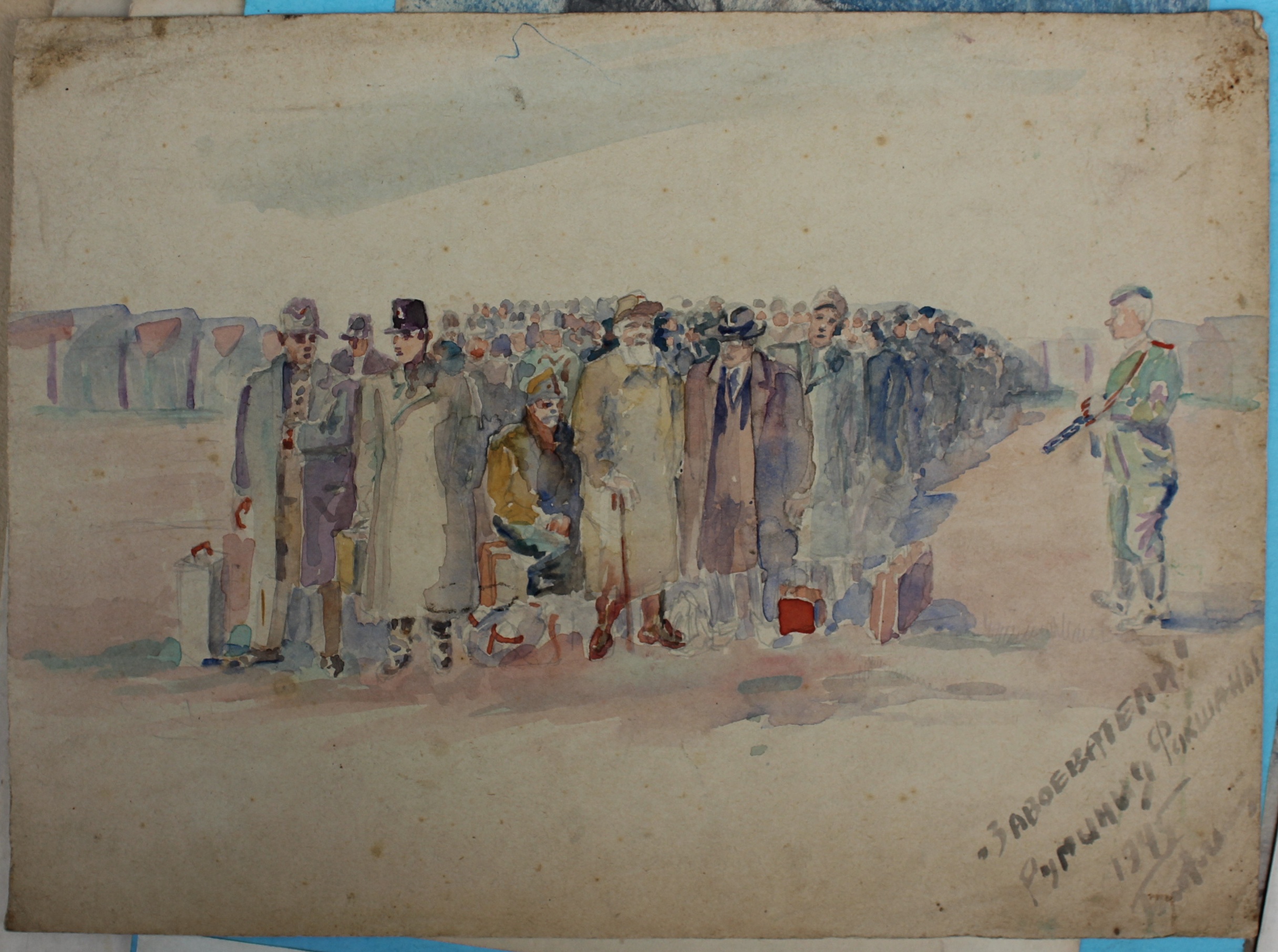Рисунок акварель "Завоеватели, Румыния Фокшаны 1945г"