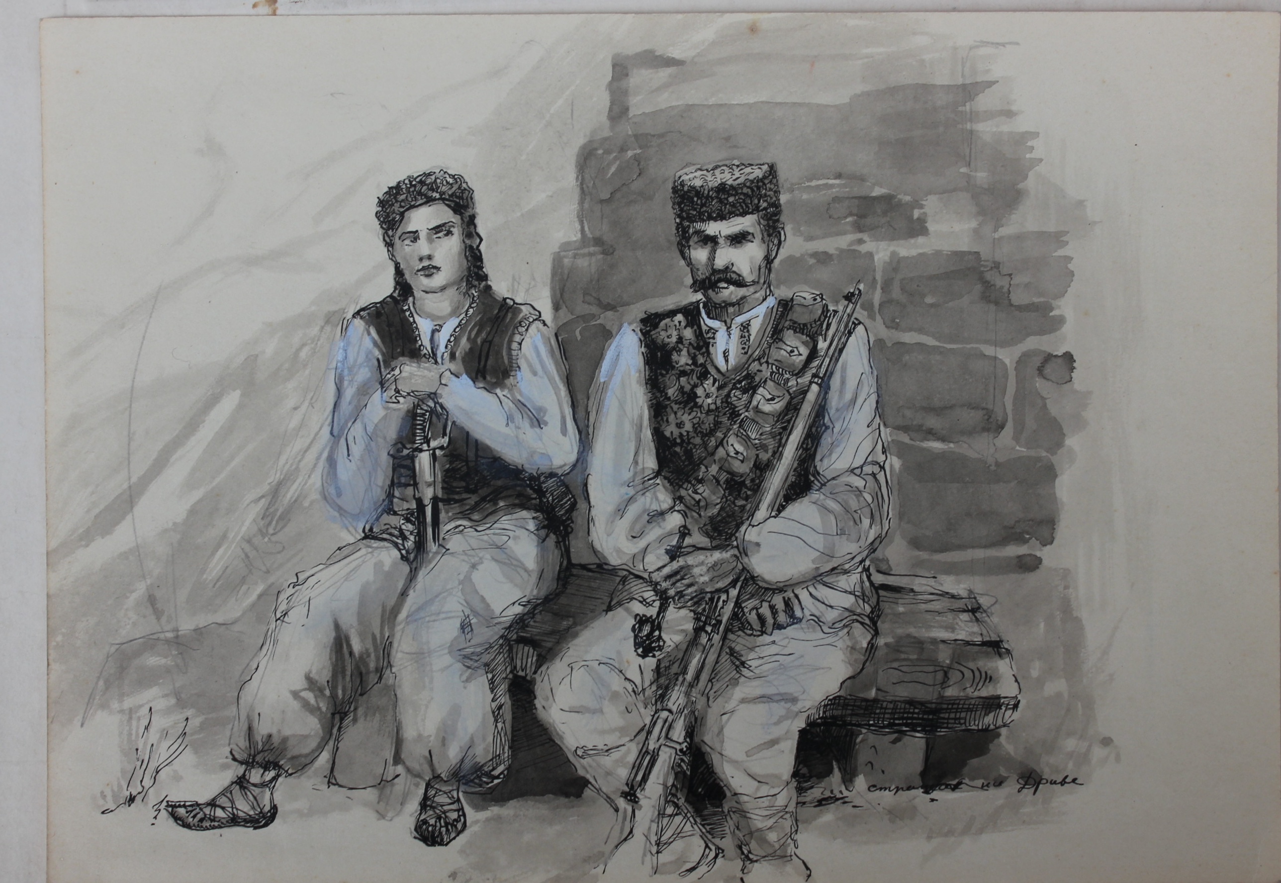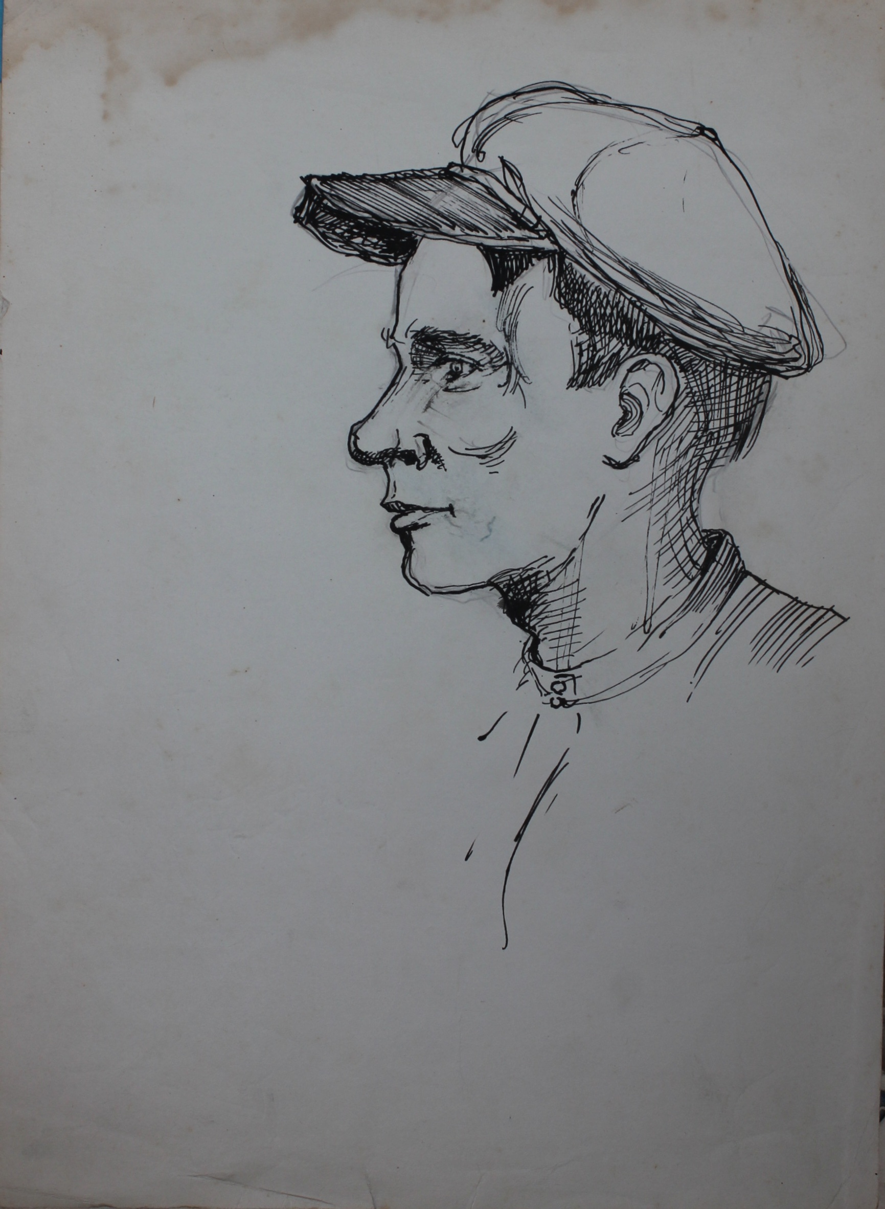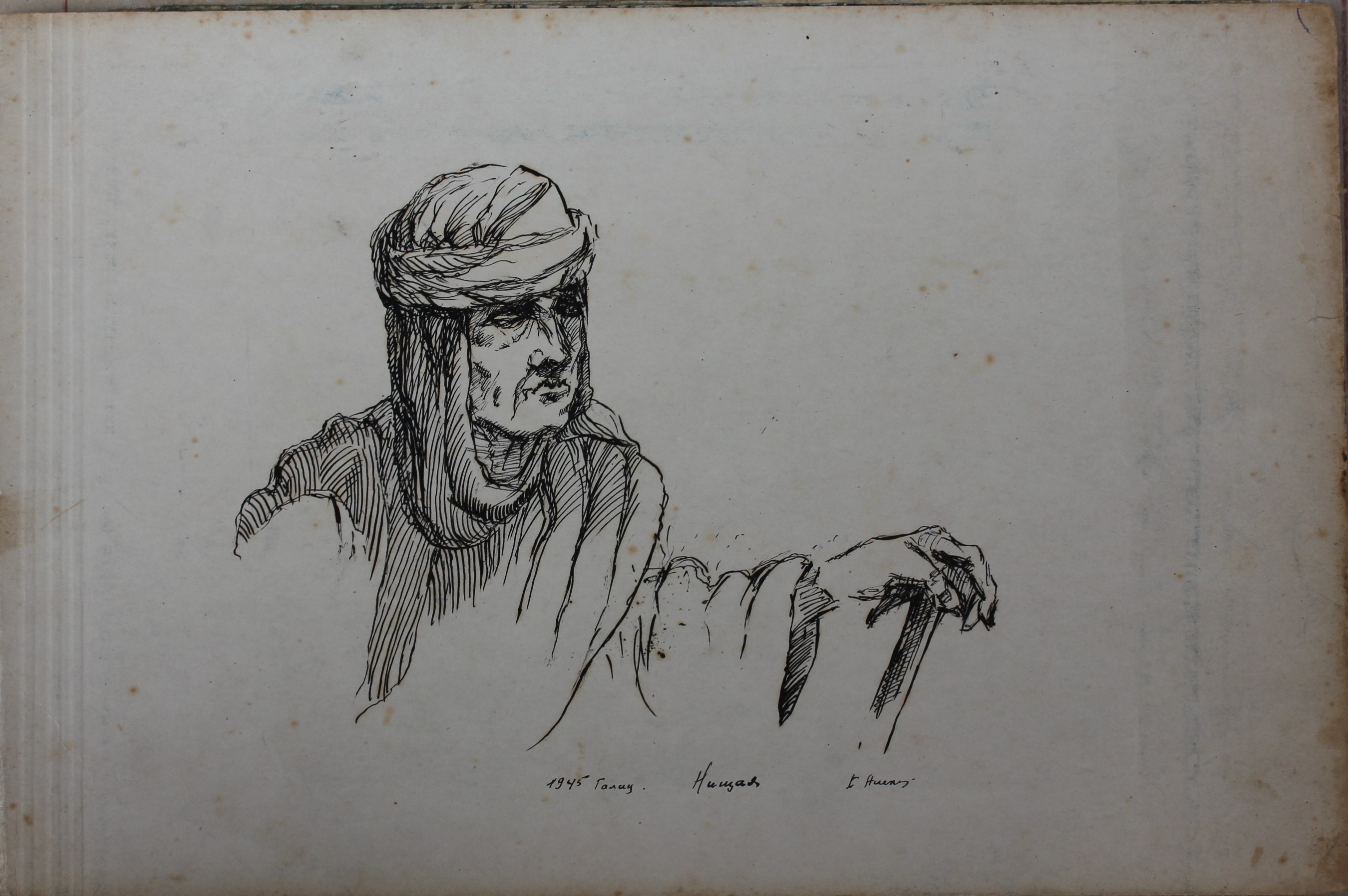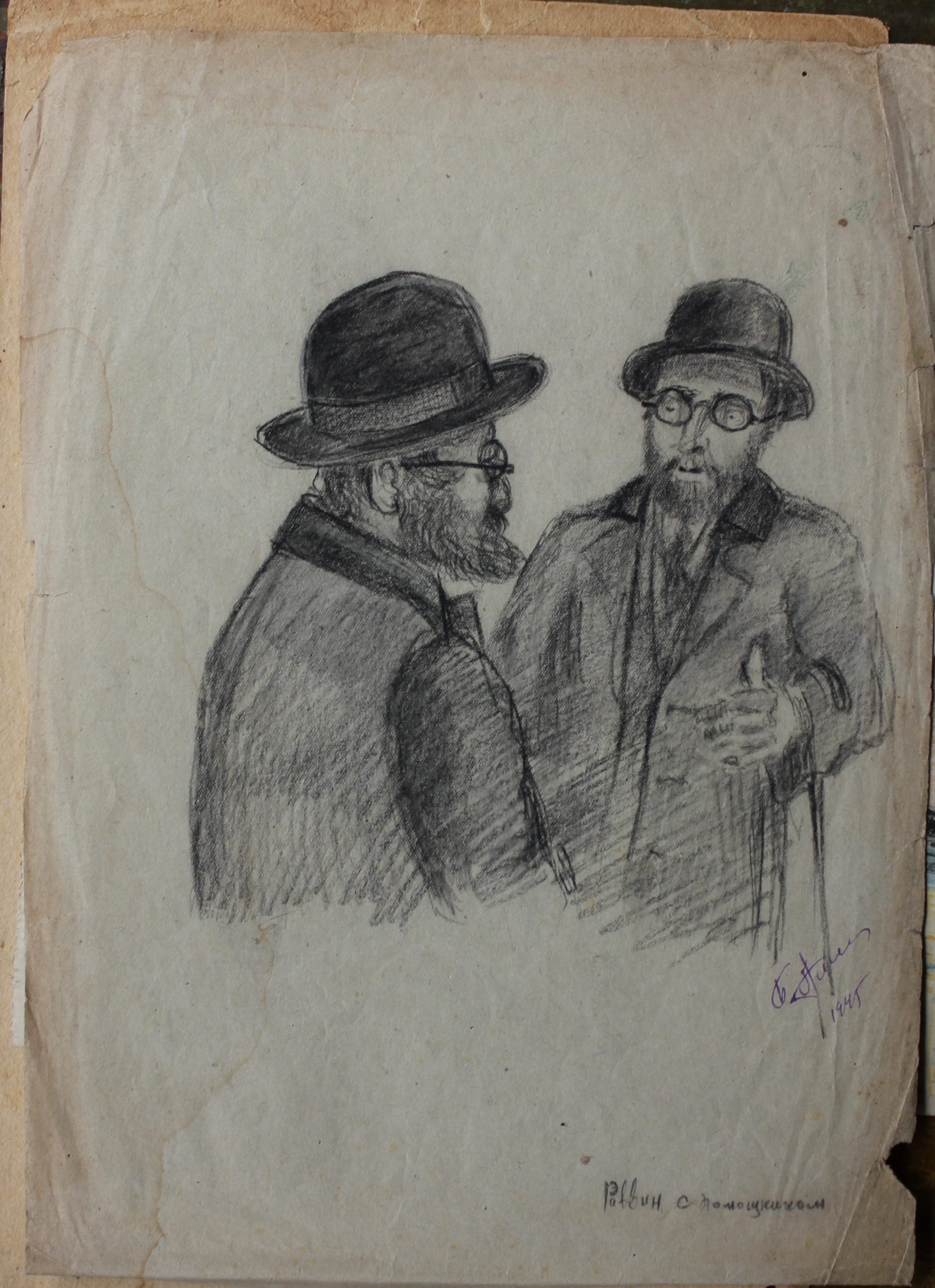 Рисунок тушью и пером "Румынский крестьянин и офицер"1945г.,,16