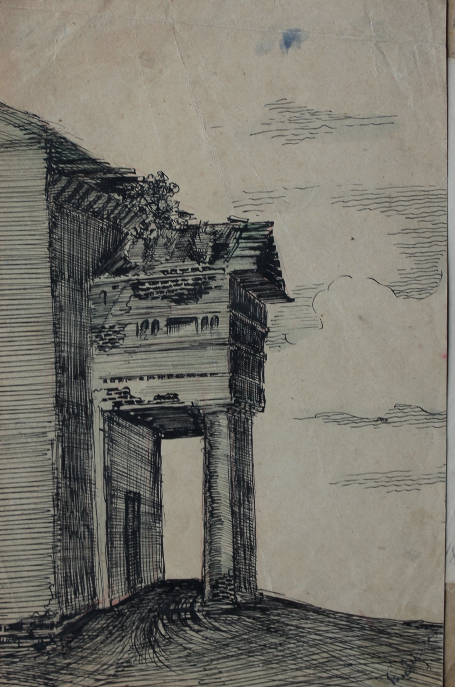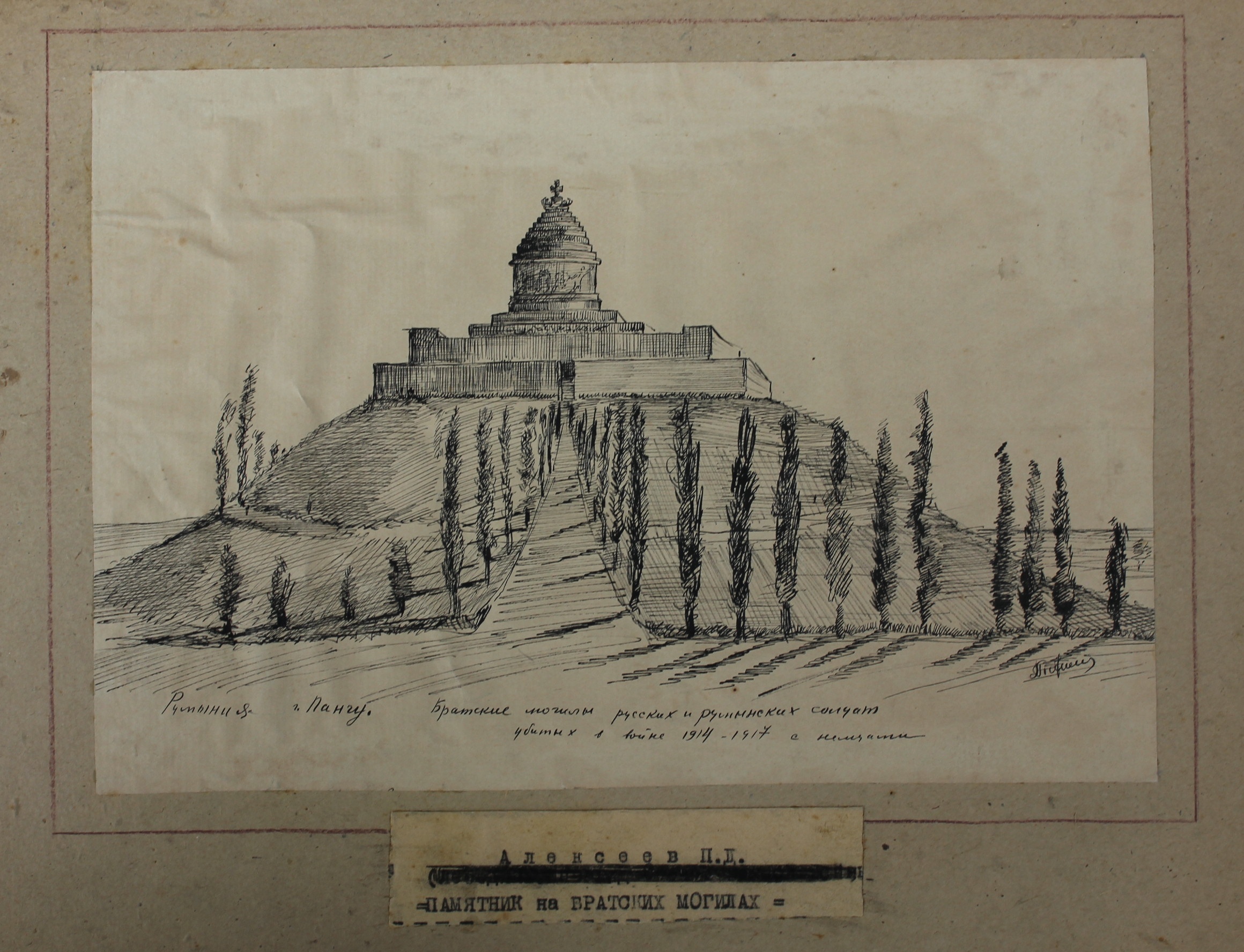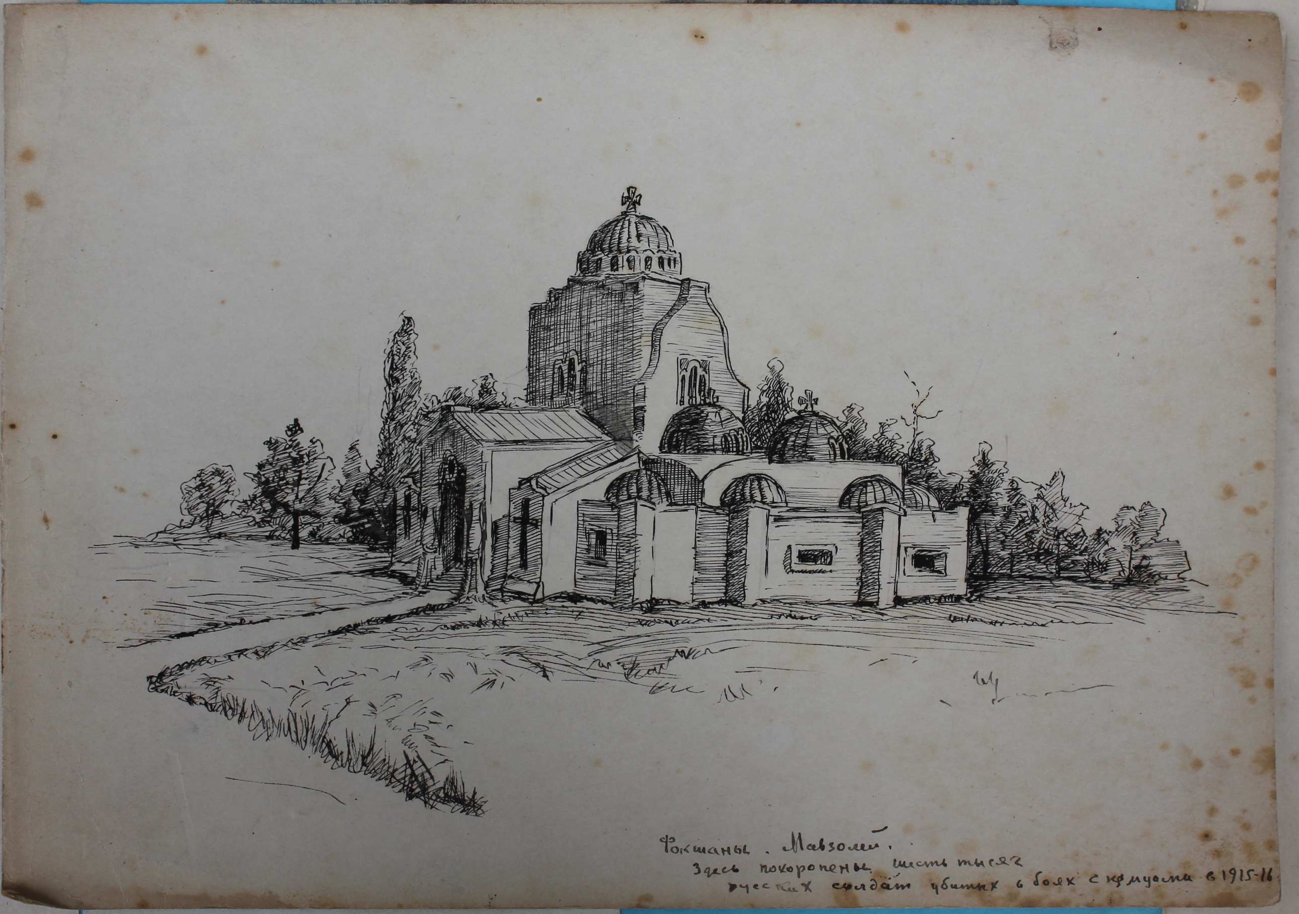 Рисунок тушью и пером "Фокшаны. Мовзалей. Здесь похоронены 6000 русских солдат убитых в боях с немцами 1915-1944годы"25