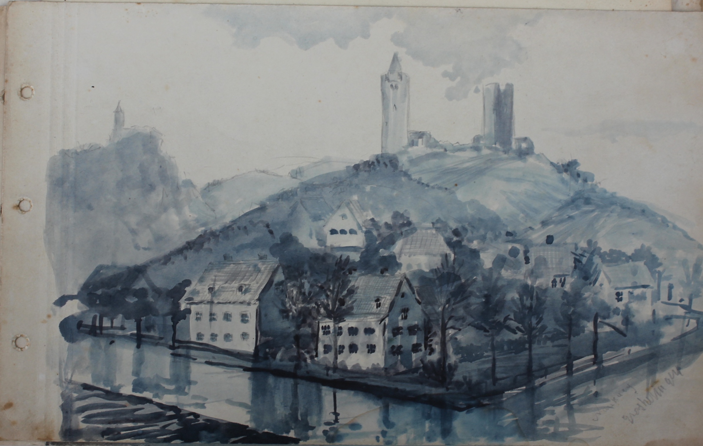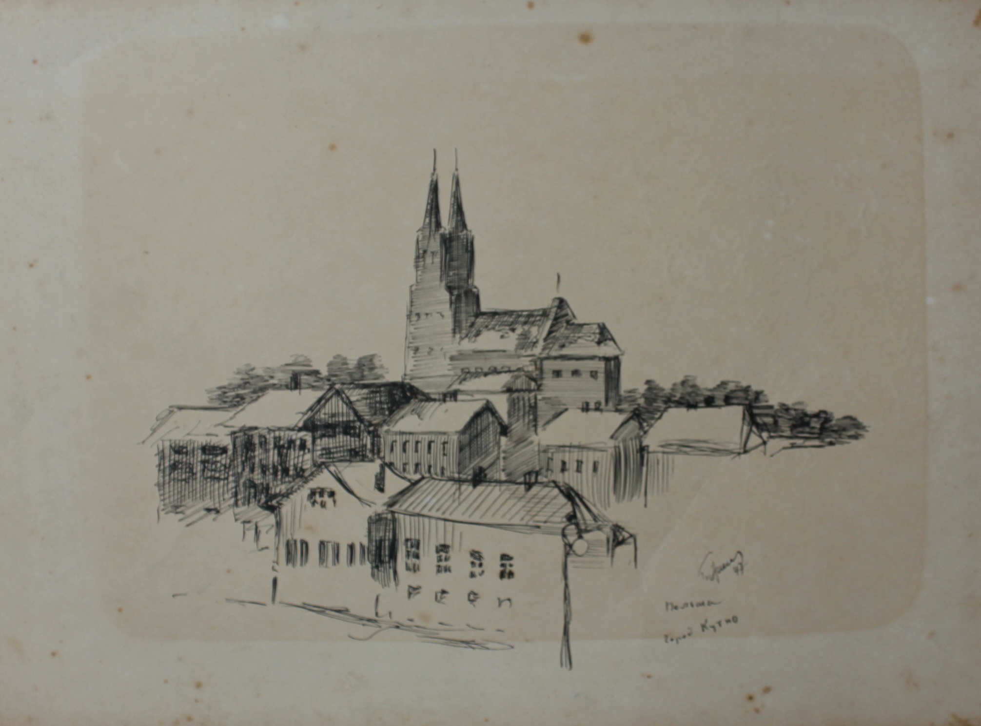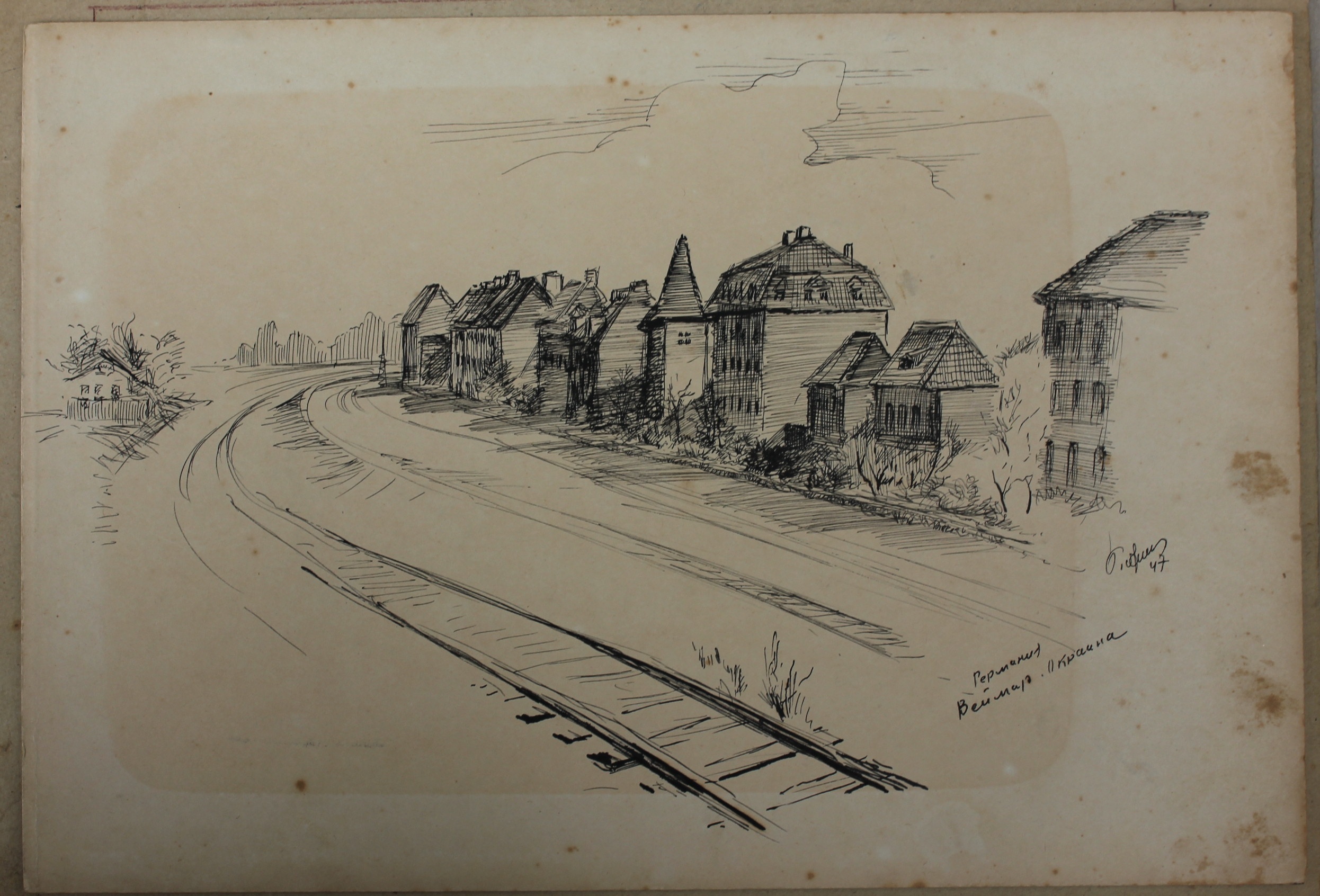 Рисунок тушью и пером "Наумбург , на вокзале"6