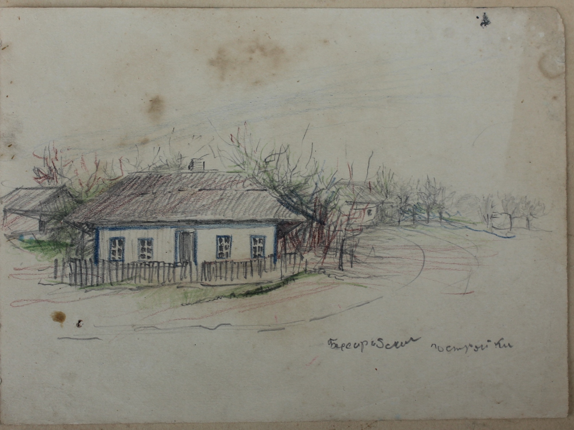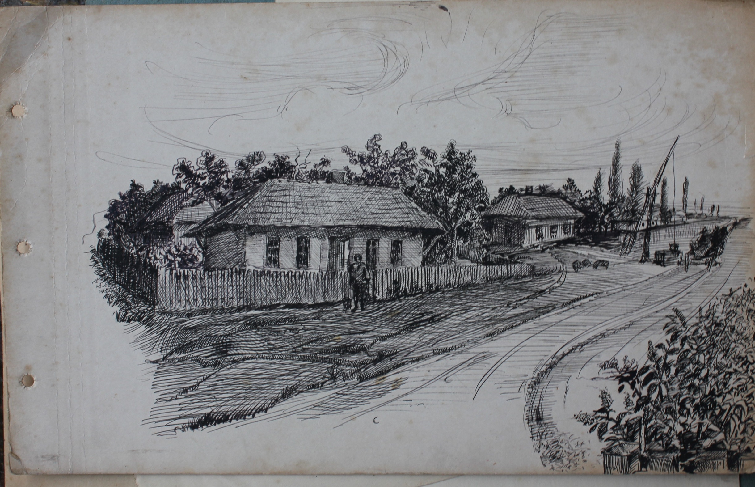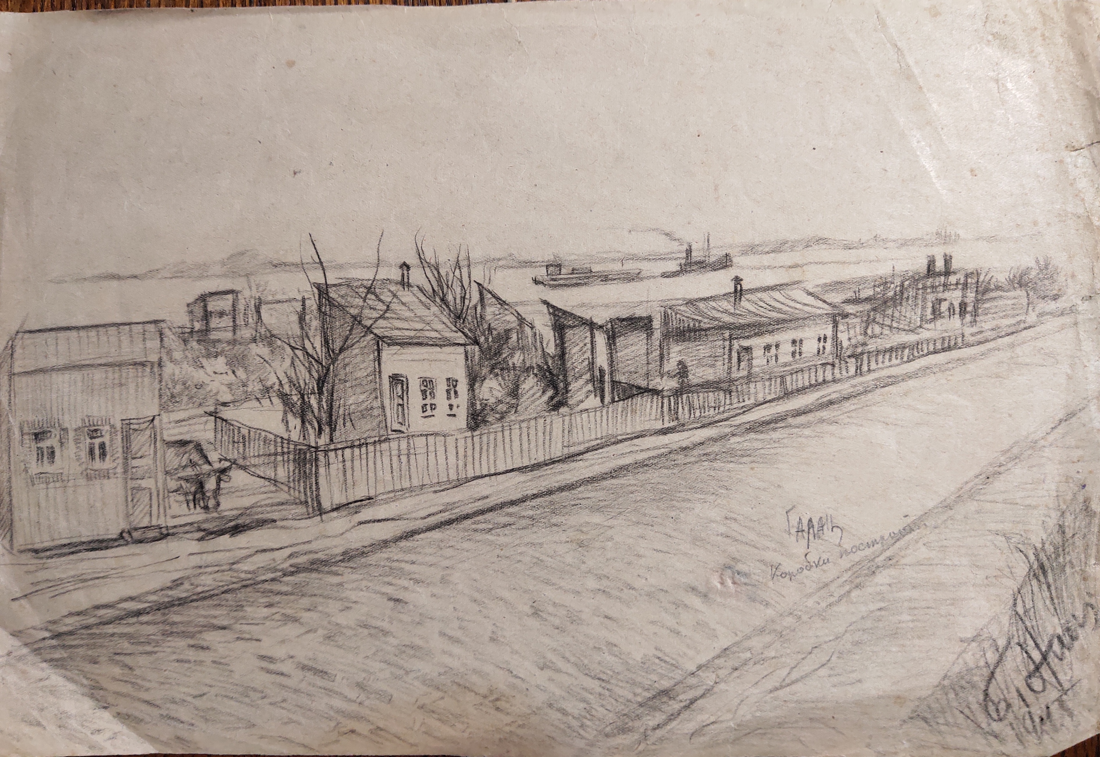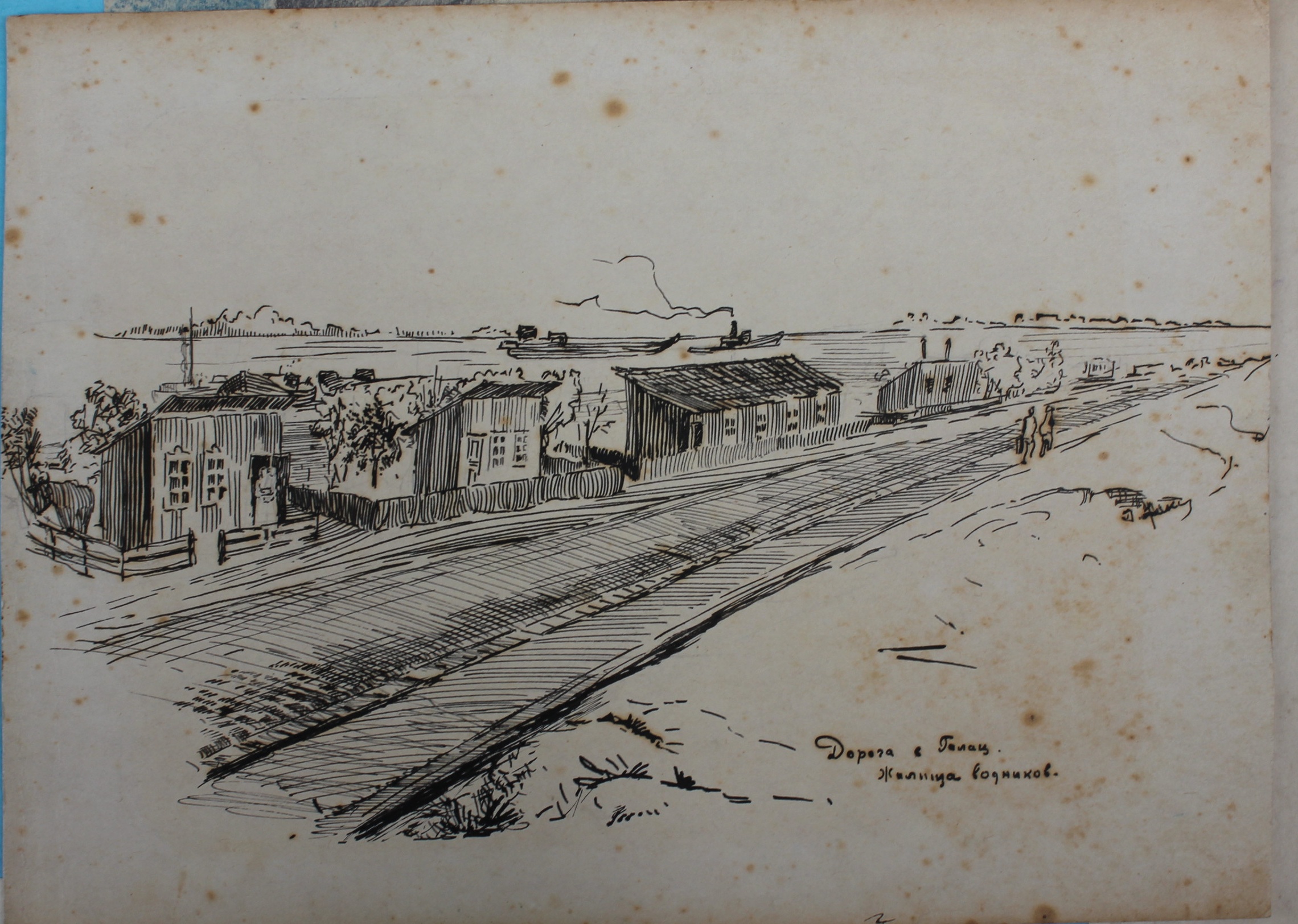 Рисунок тушью и пером "Дорога в Галац. Жилища водников"27