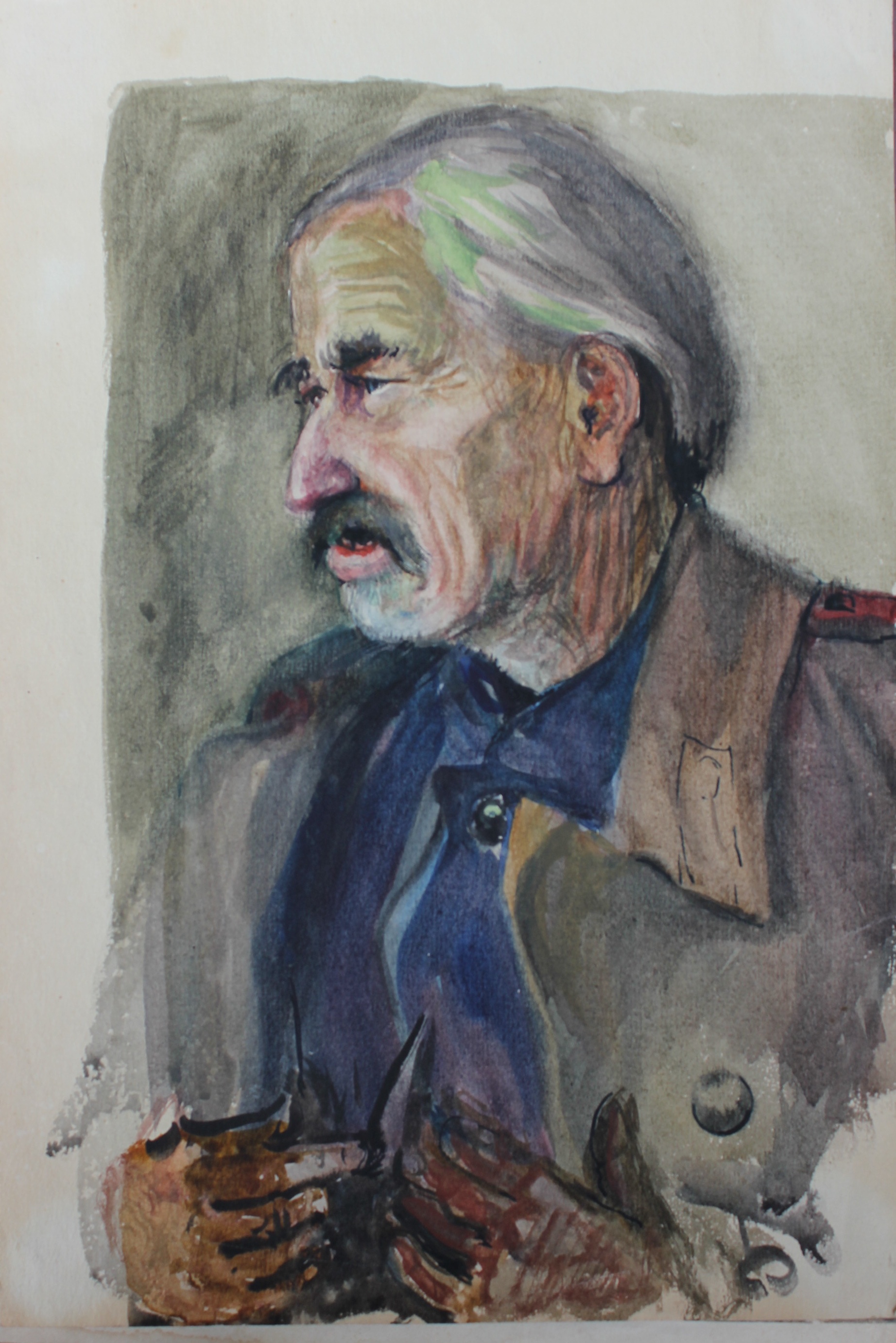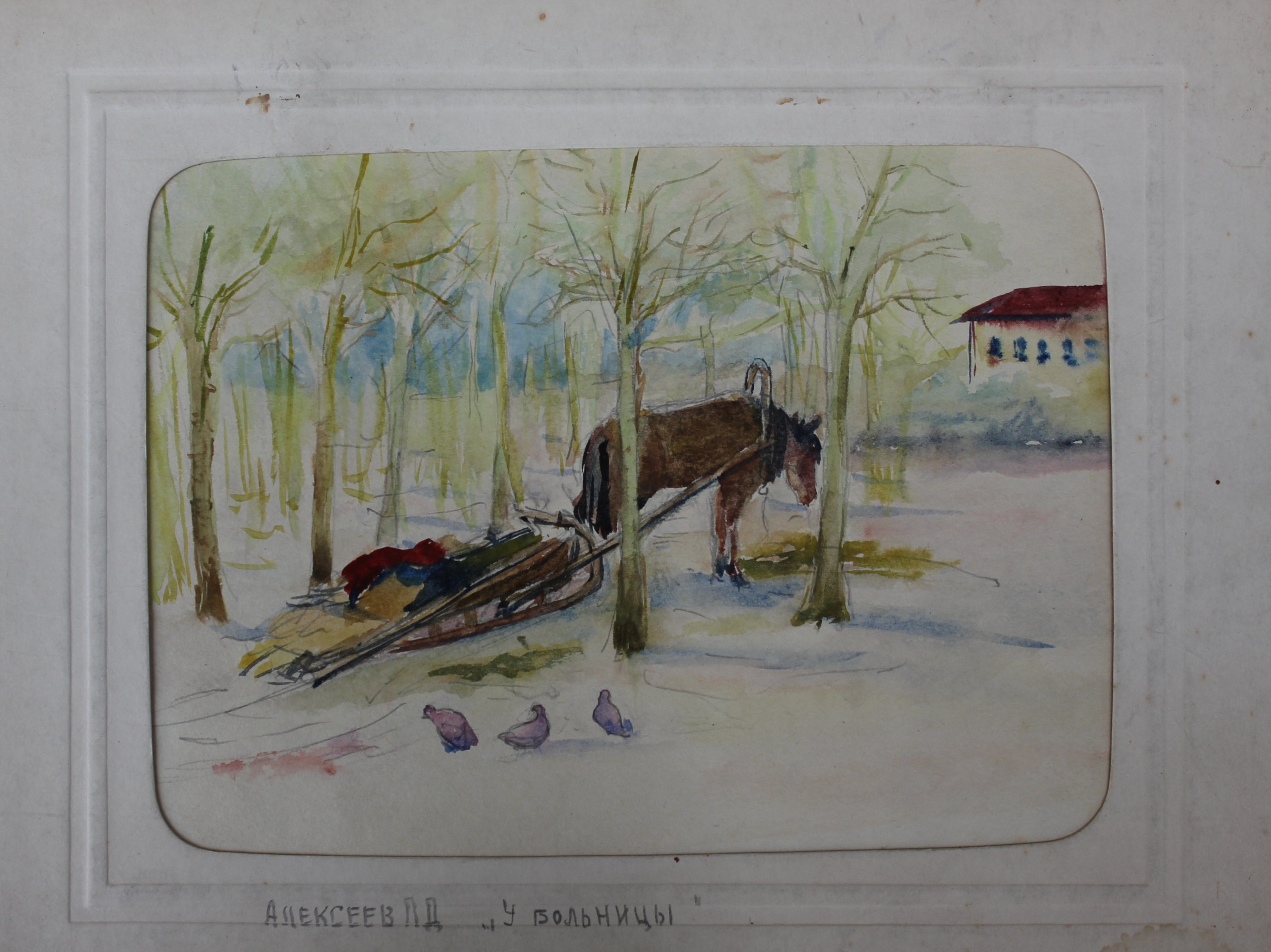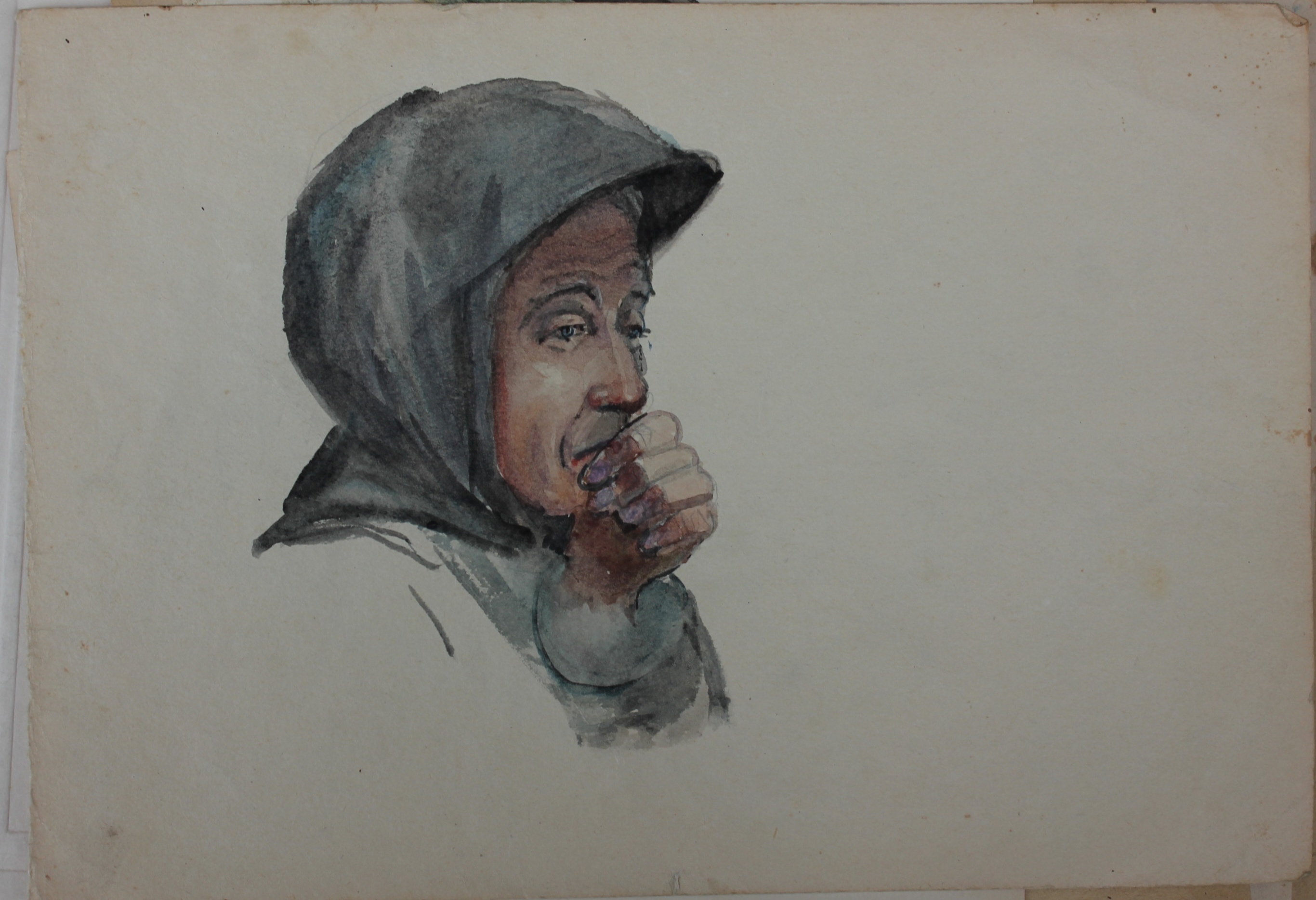 Рисунок акварель "Фокшаны 15.05.1945 "За перевязкой" 43