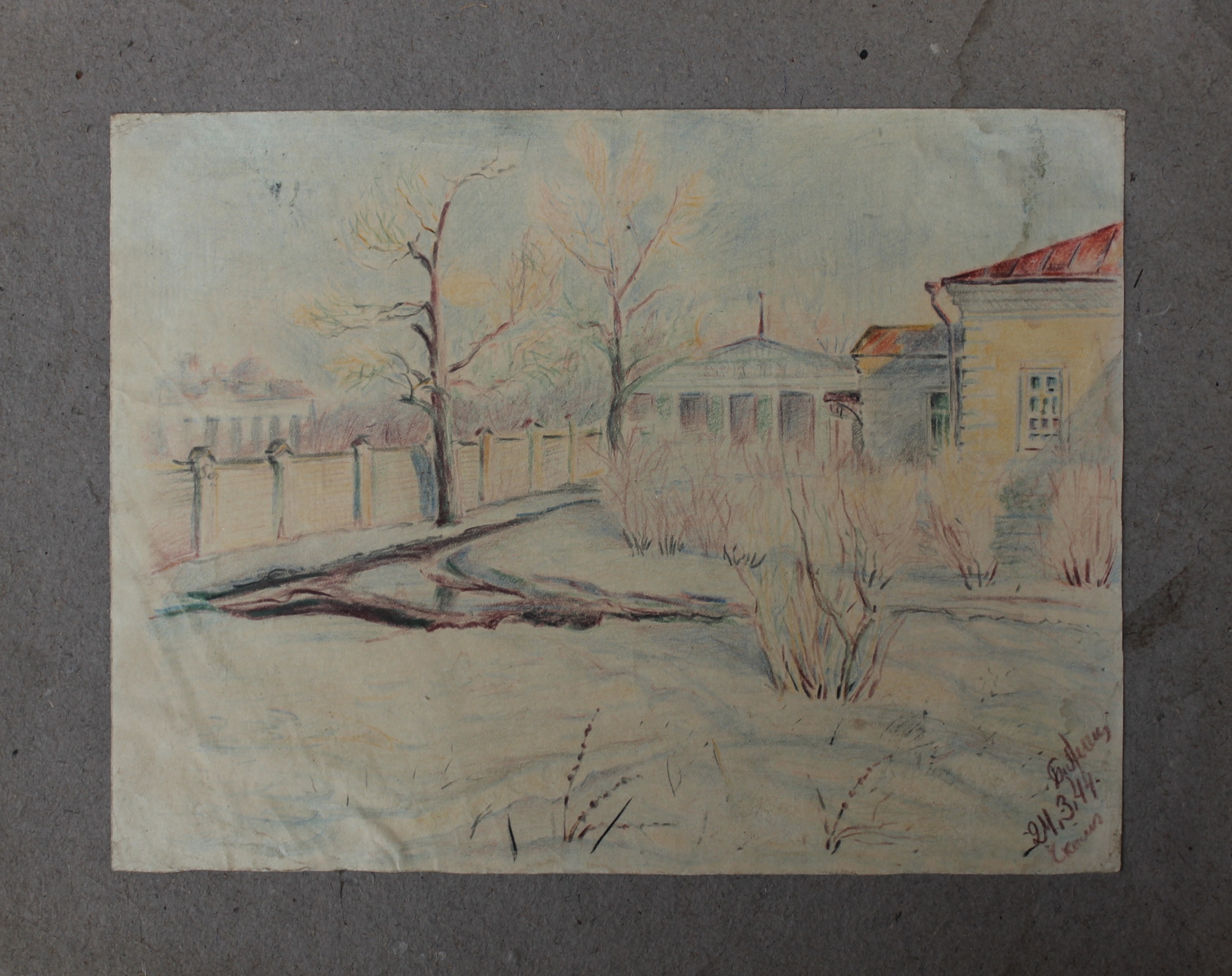 Рисунок"г. Лебедянь, 1941г Штаб ПВО Пункт сбора донесенй в здании Доротдела"