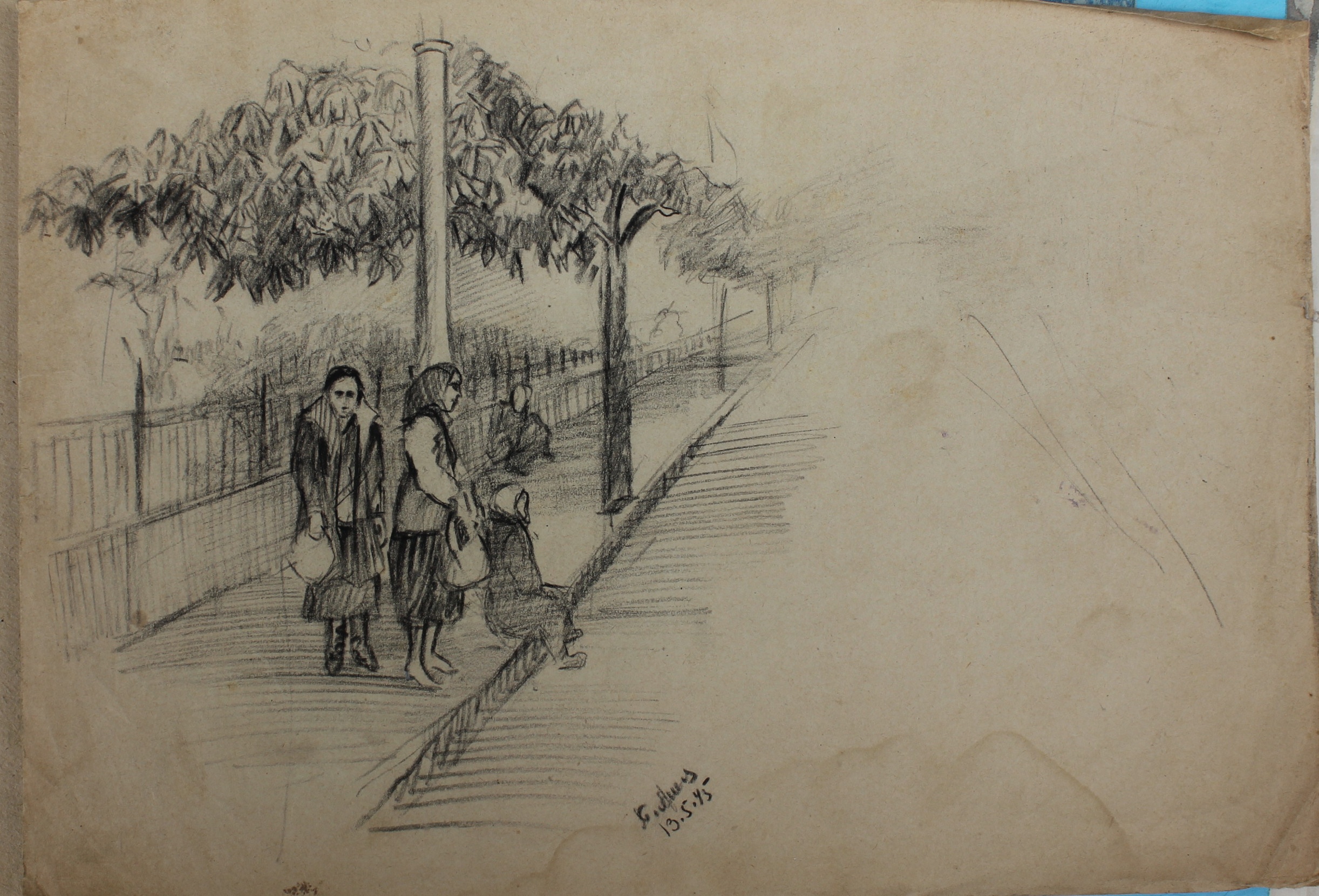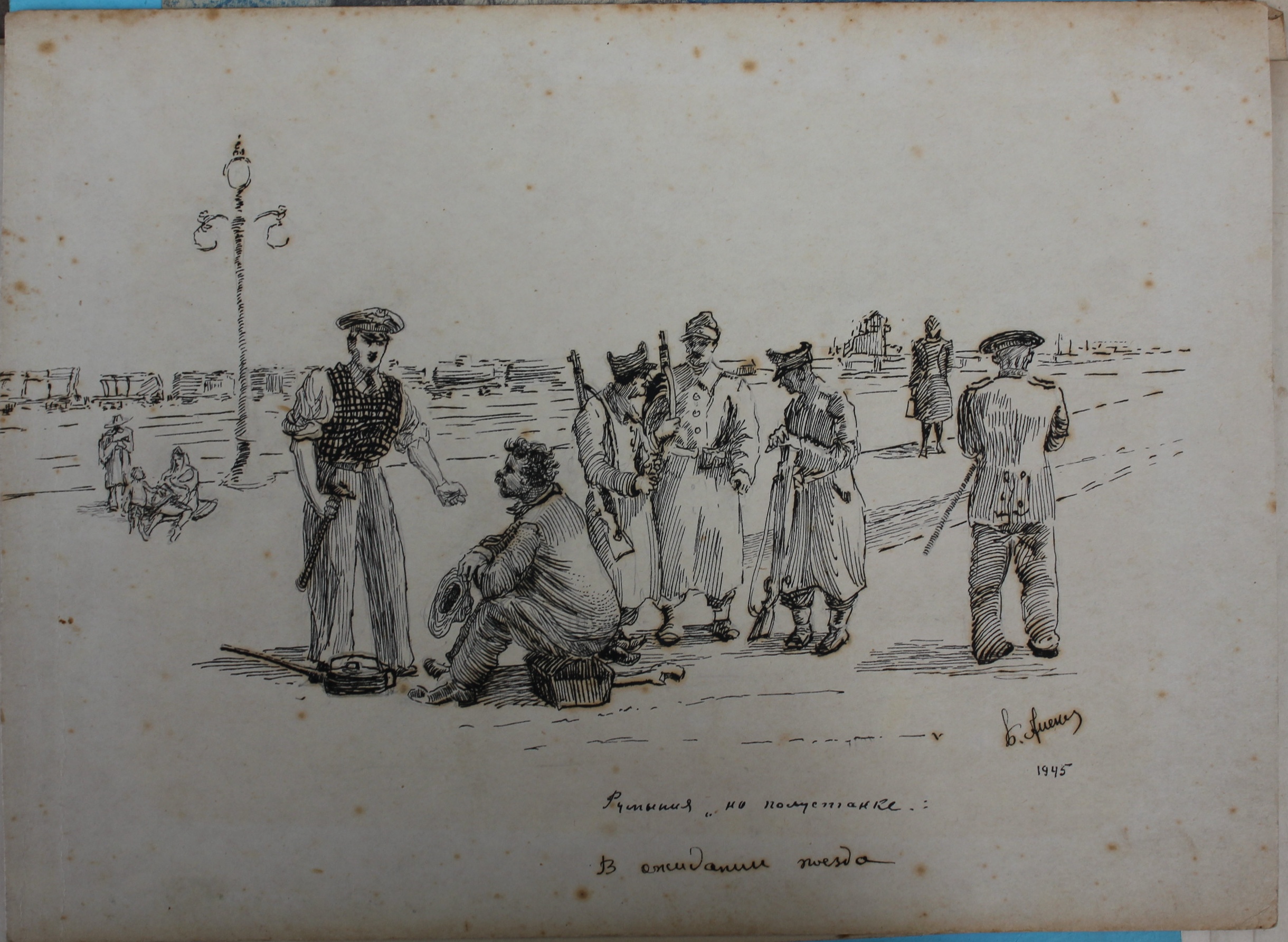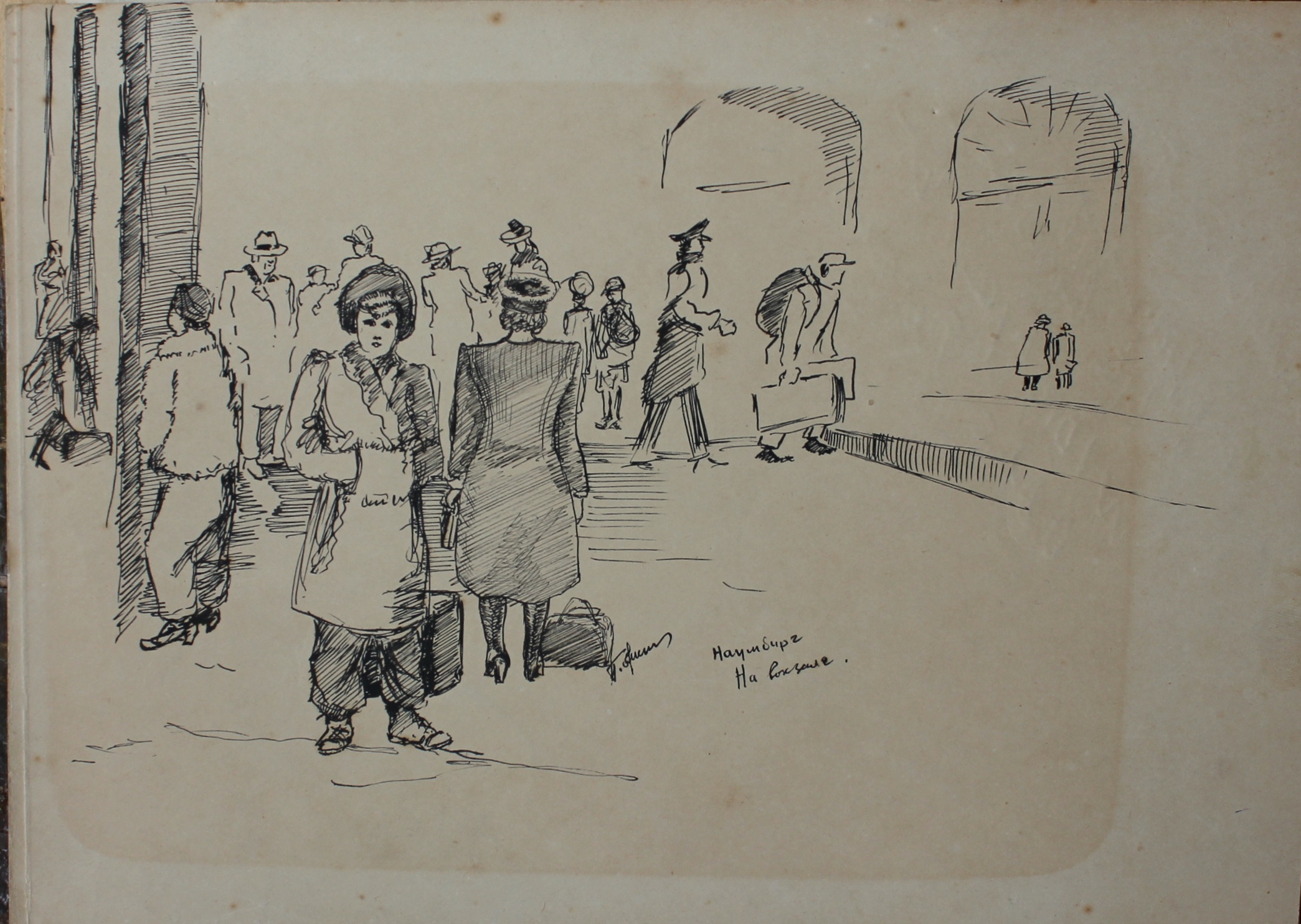 Рисунок карандашом "На персоне, ожидание поезда 13.051945