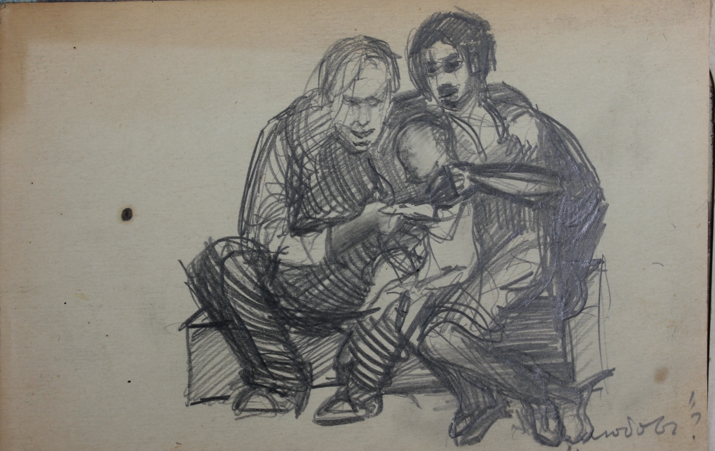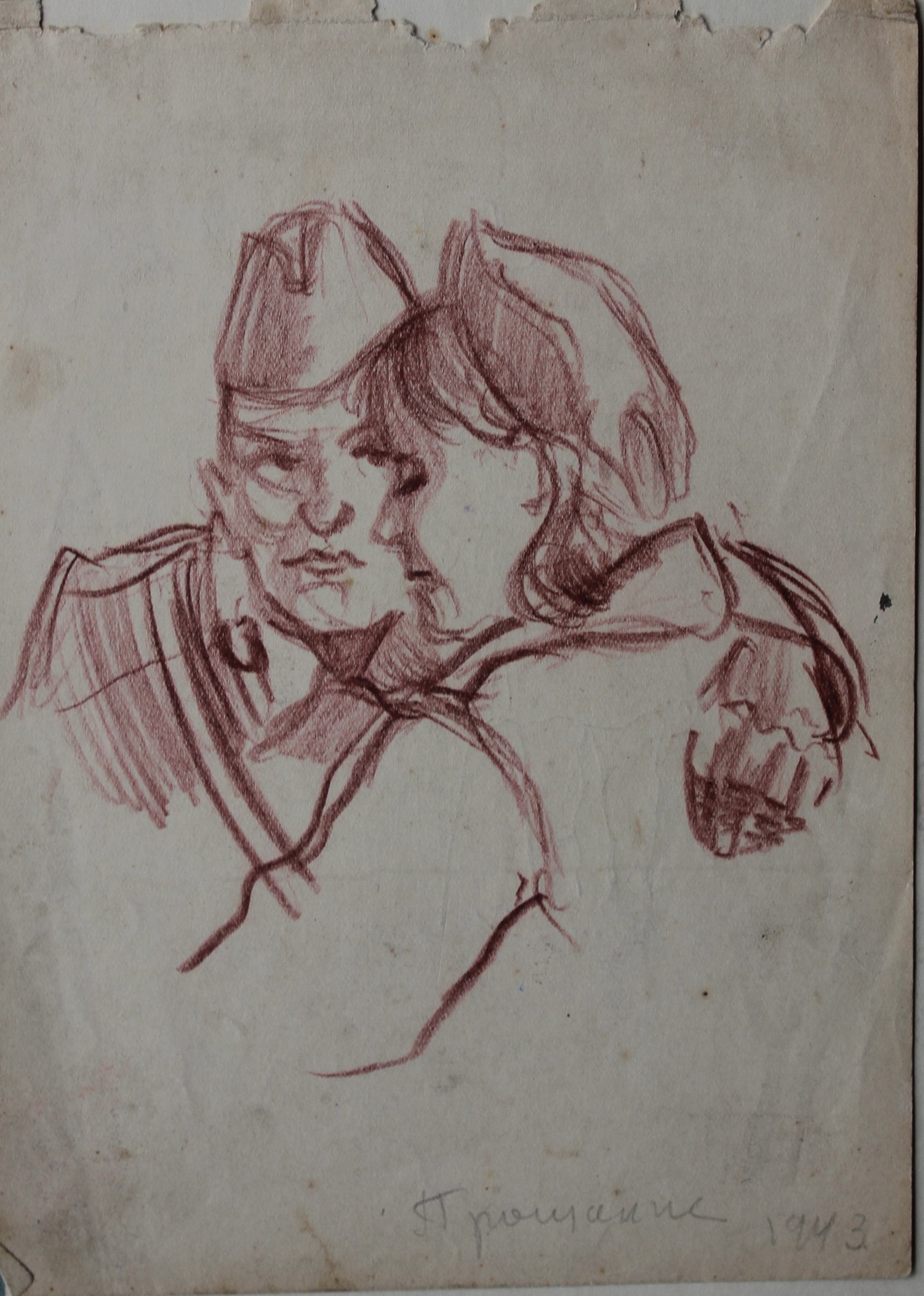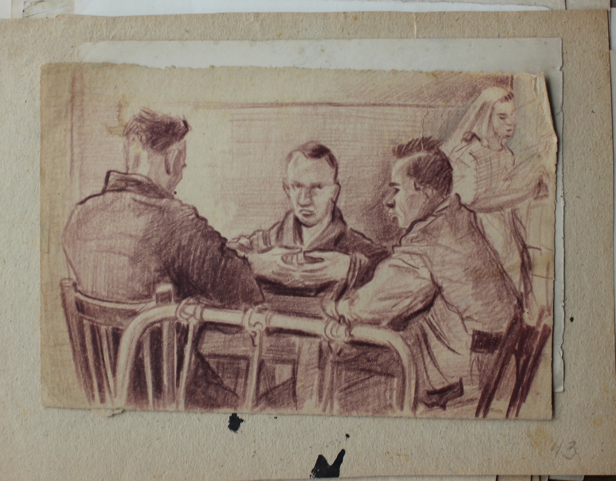 Рисунок карандашом "На персоне, ожидание поезда 13.051945