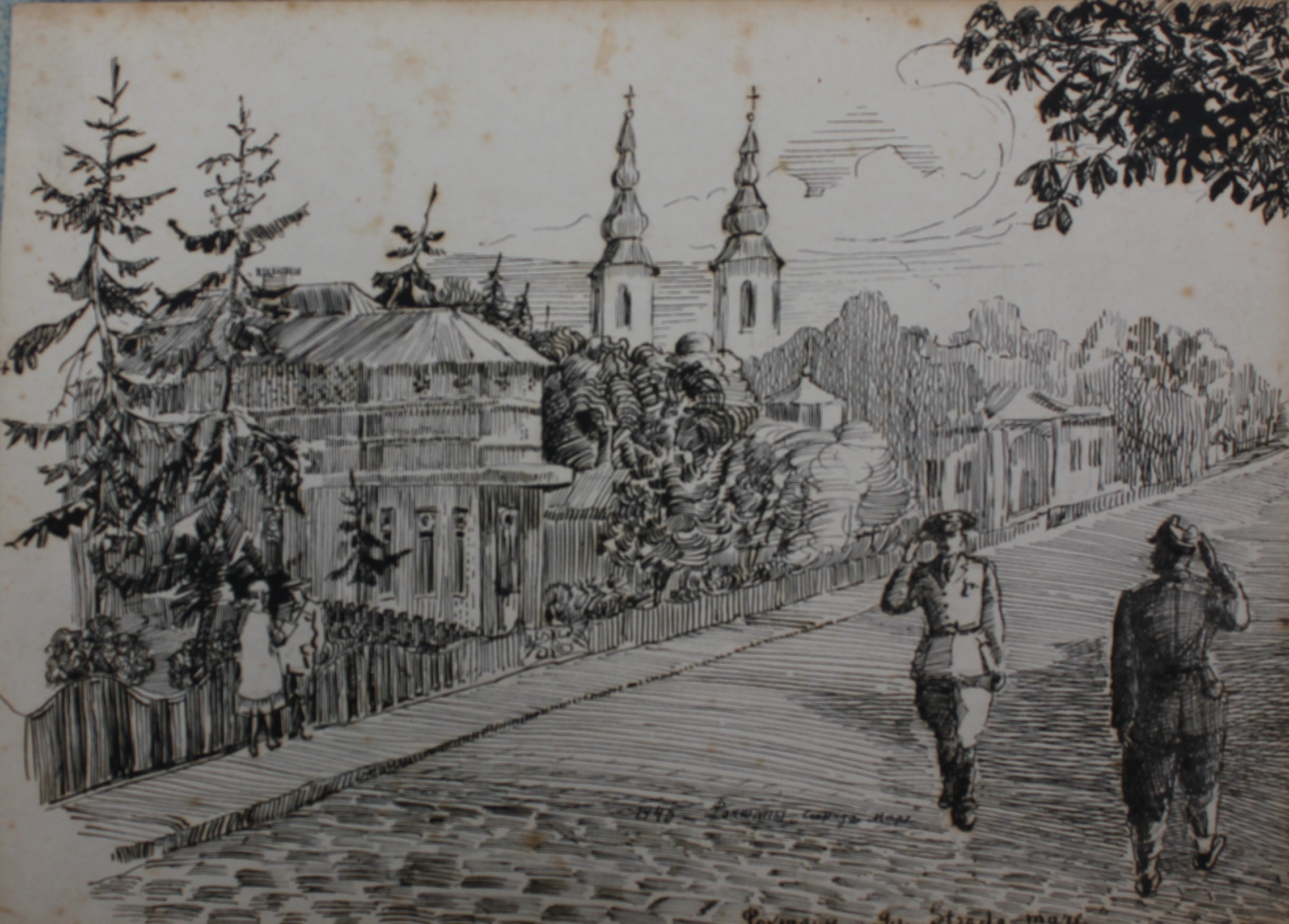Рисунок пером и тушью "Румынские войска на молебен перед отправкой на фронт (теперь против немцев) "22