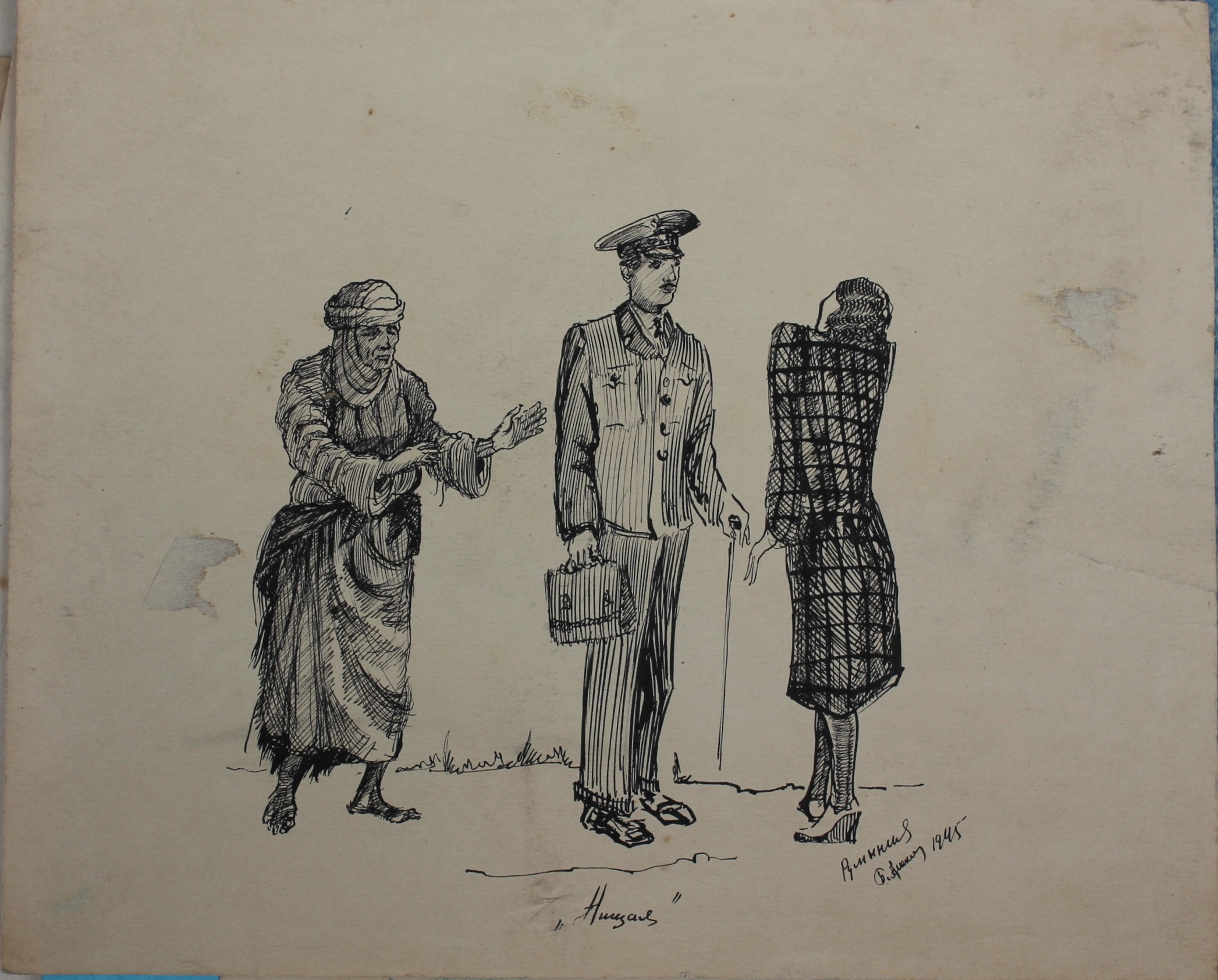 Рисунок тушью и пером "1945г., Галиц "Нищая""28