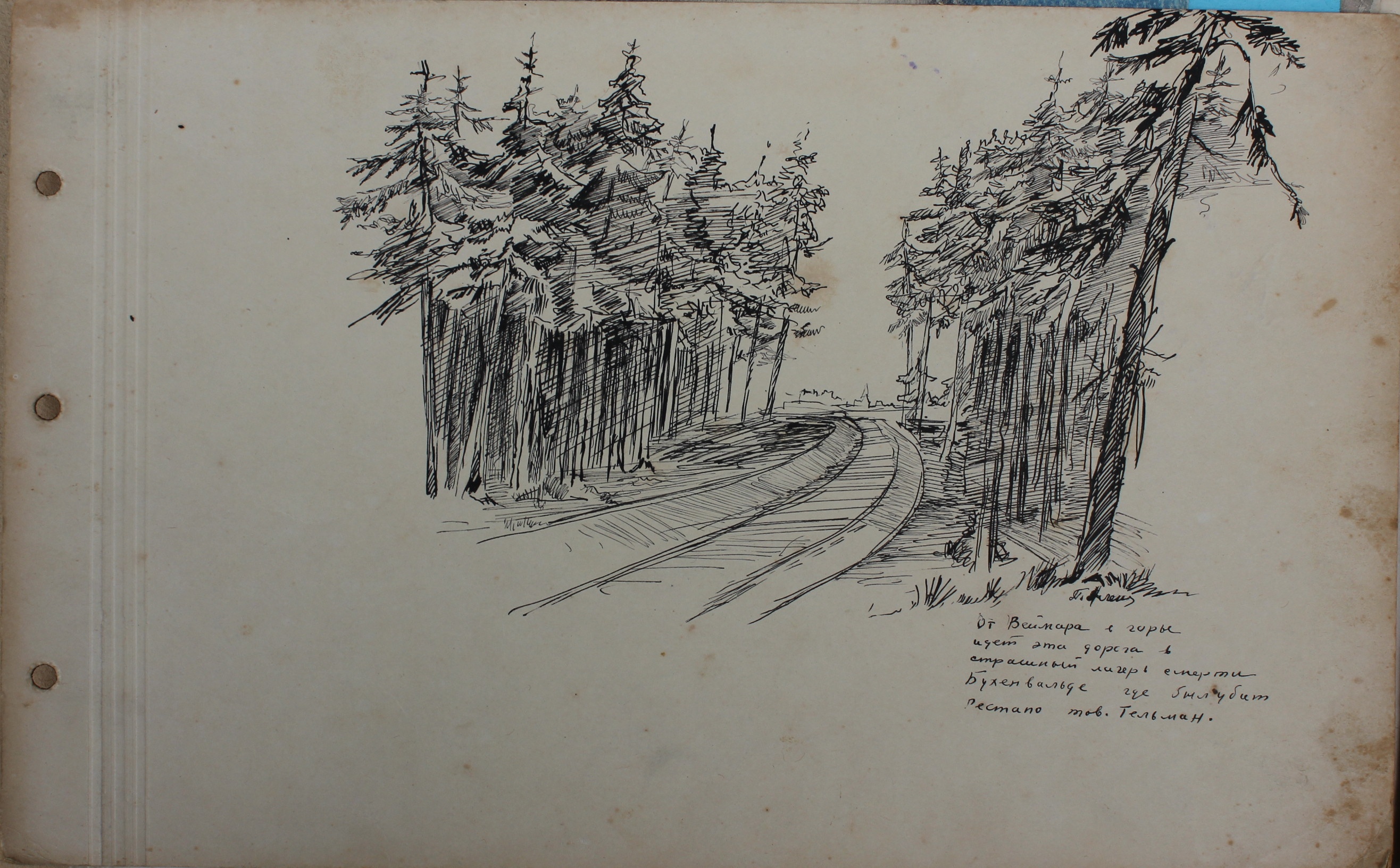 Рисунок тушью и пером "Дорога в страшный лагерь смерти Бухенвальд"3