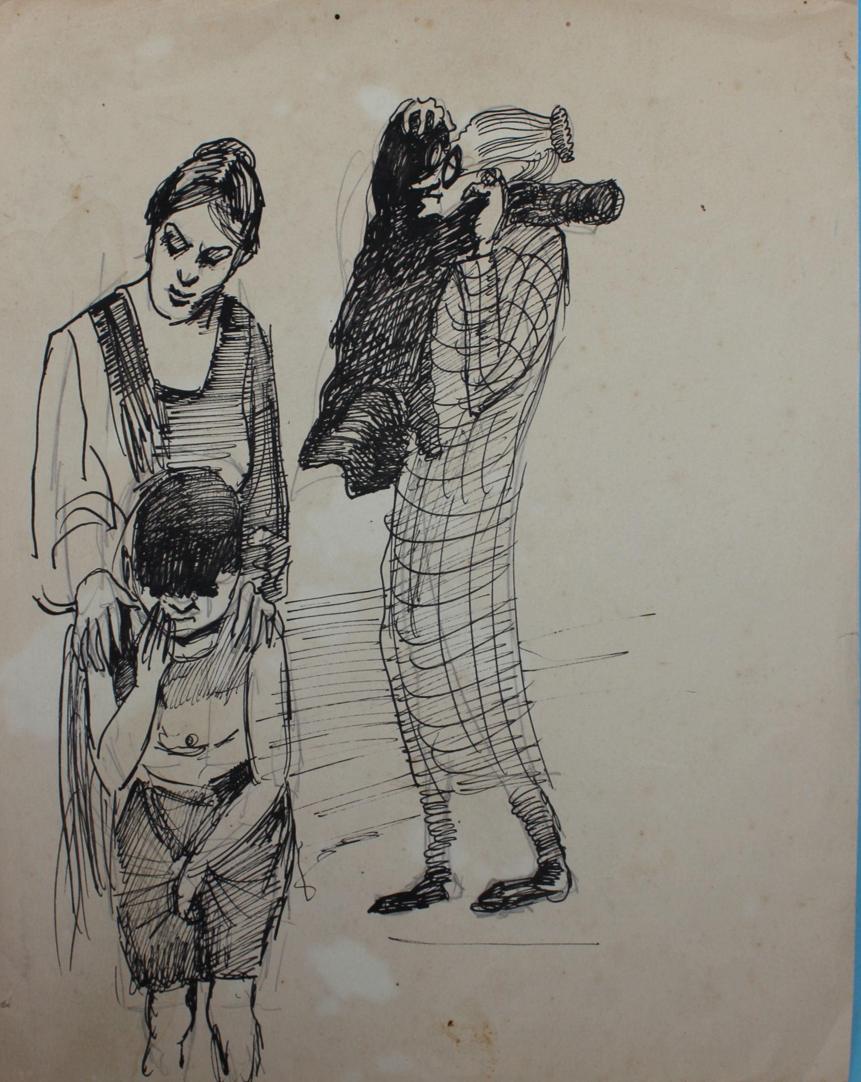 Рисунок тушью и пером "Нищая" Румыния 1945г. ,19