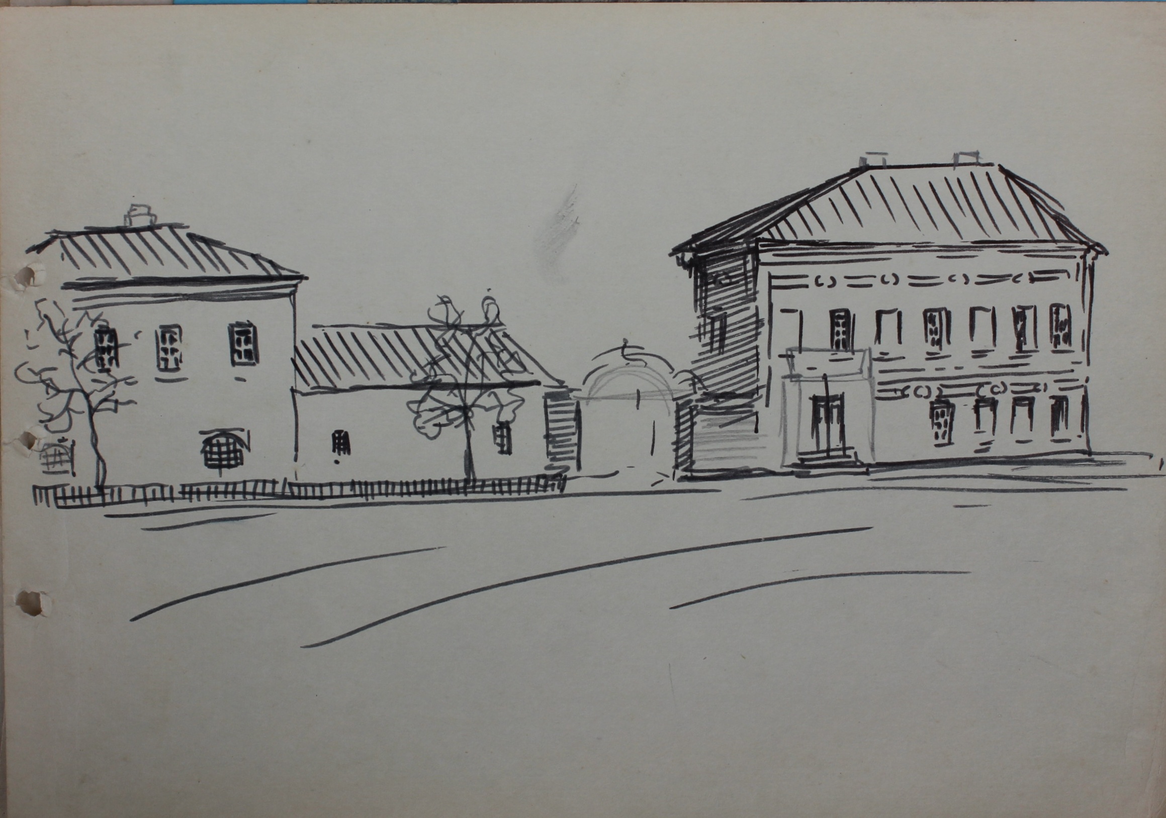Тушью и пером "Начало строительства ДК в г. Лебедянь" 18