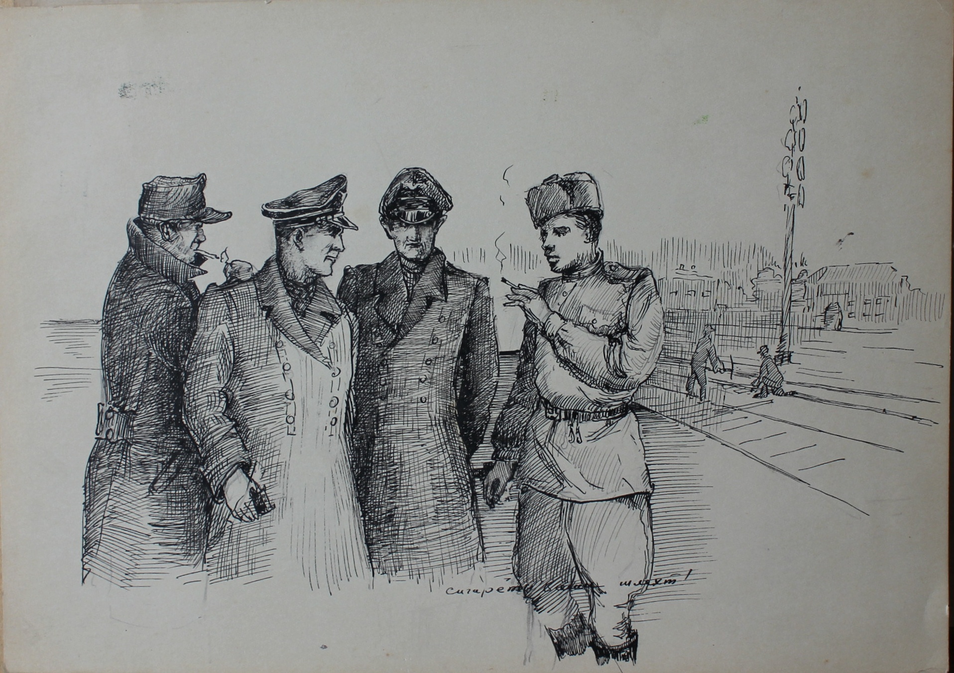 Рисунок пером и тушью " Сигареты ваши шлехт "50