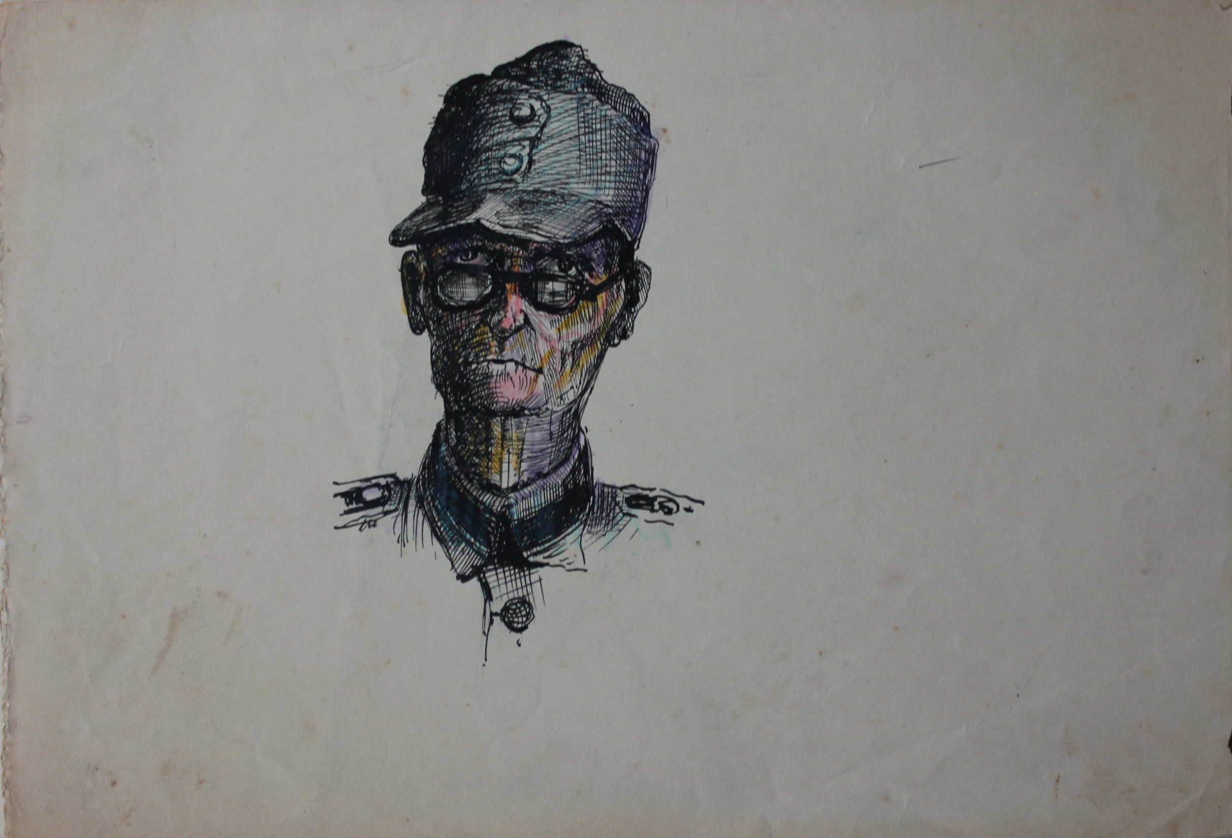 Рисунок тушью и пером "Германия, 1947год, Лейпциг -Текли. Немецкие железнодорожные коменданты "4