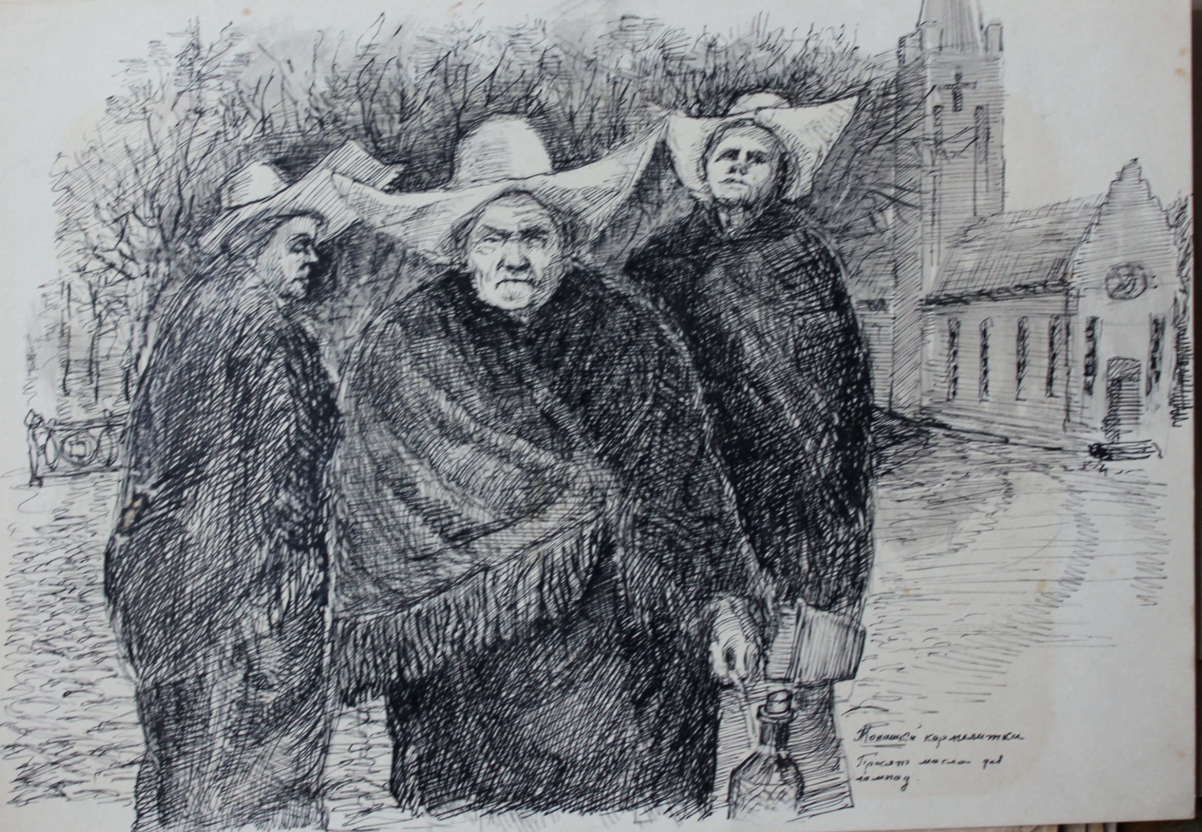 Рисунок пером и тушью "Монашки кармелитки просят масло для лампад" 13