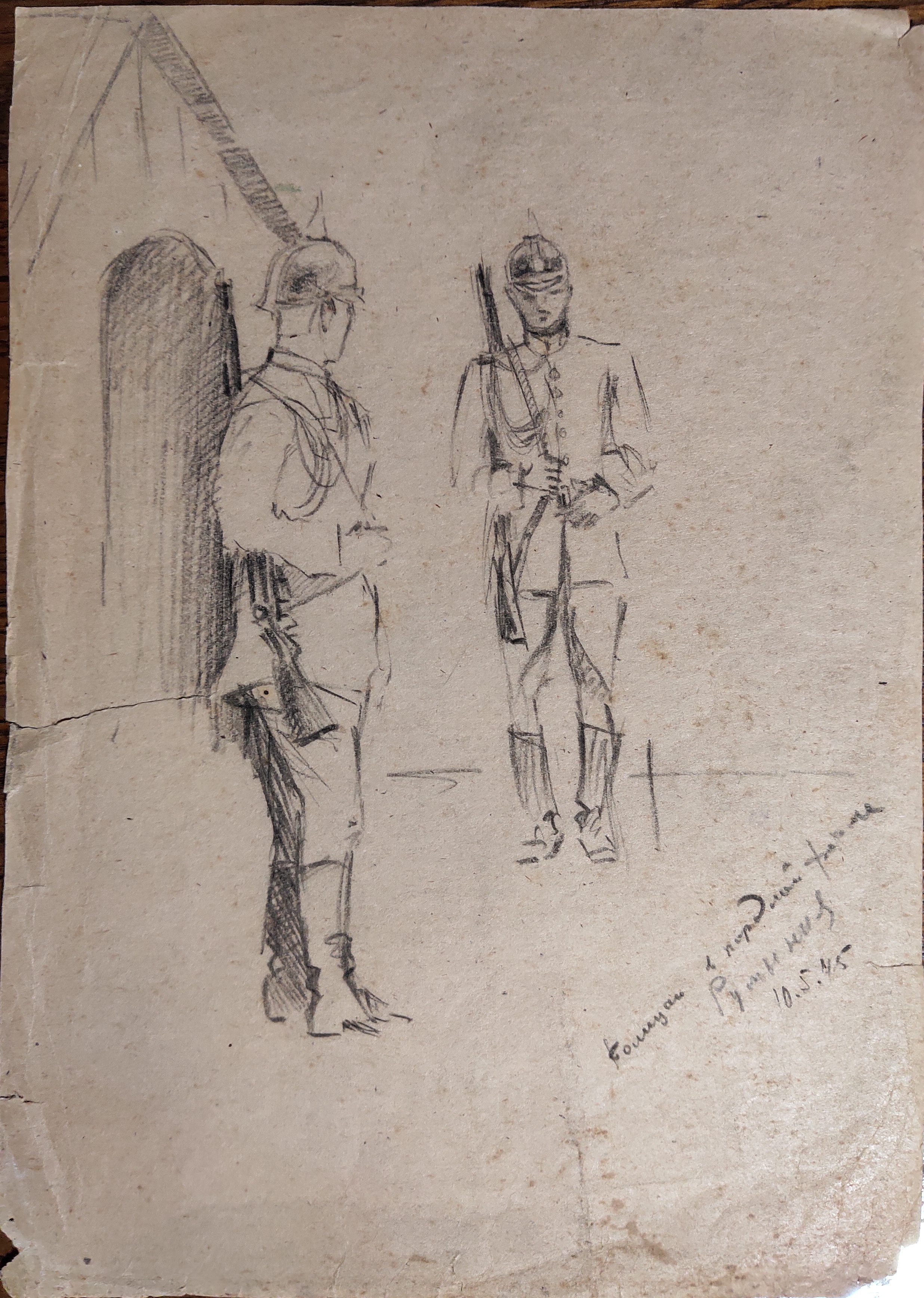 Рисунок карандашом "Полицаи в парадной форме Румыния 10.05.1945 г. " 20