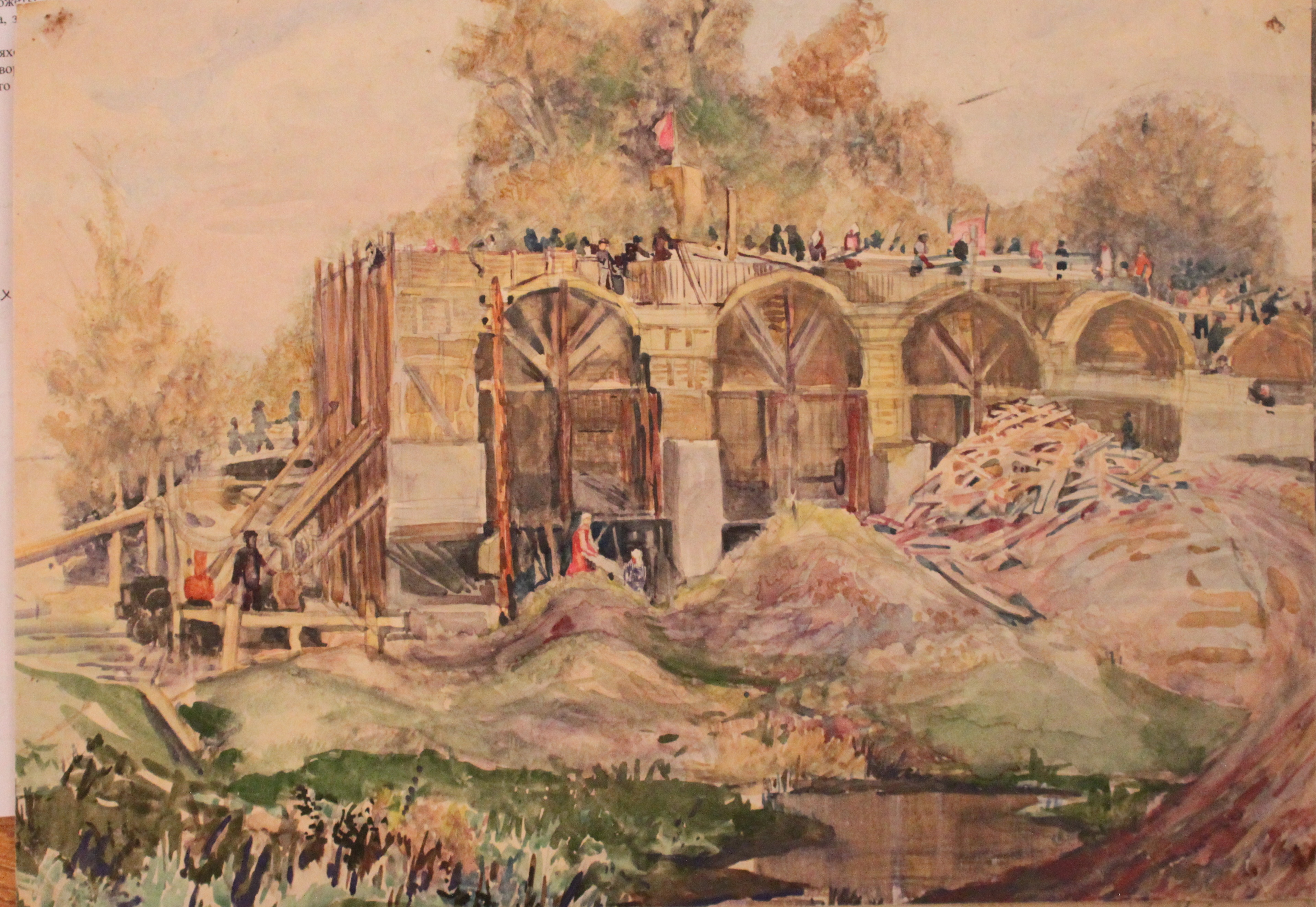 Рисунок "Закладка фундамента Дома Культуры г. Лебедянь 1949 год"