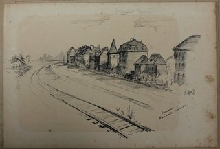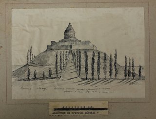 Рисунок тушью и пером "Памятник на братских могилах, Польша г. Кунто" 35"