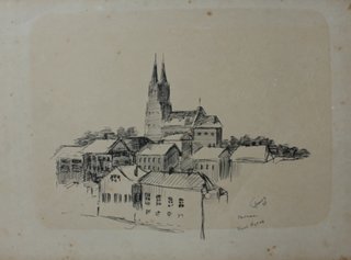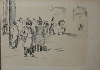 Рисунок тушью и пером "Наумбург , на вокзале"6