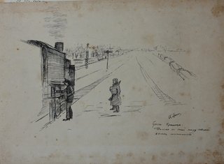 Рисунок тушью и пером "Брест. Граница. Дальше на запад поезд поведет немец машинист "14