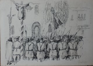 Рисунок пером и тушью "Румынские войска на молебен перед отправкой на фронт (теперь против немцев) "22