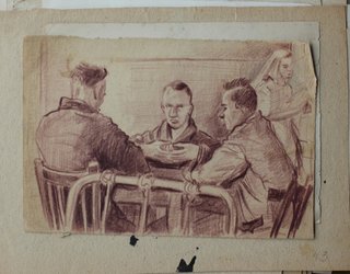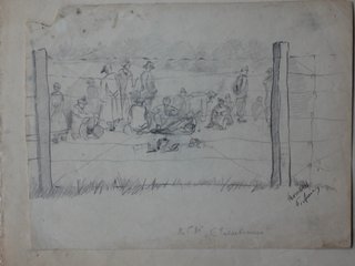 Рисунок карандашом "Фокшаны, В комендатуре телефон не работает, 13.05.1945 г. "