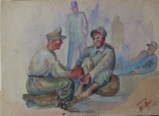 Рисунок акварель "Фокшаны 15.05.1945 "За перевязкой" 43