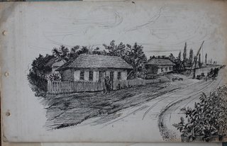 Рисунок тушью и пером "Равнины в Бухаресте" (Румыния апрель 1945г.) 11.
