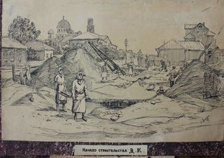 Тушью и пером "Начало строительства ДК в г. Лебедянь" 18